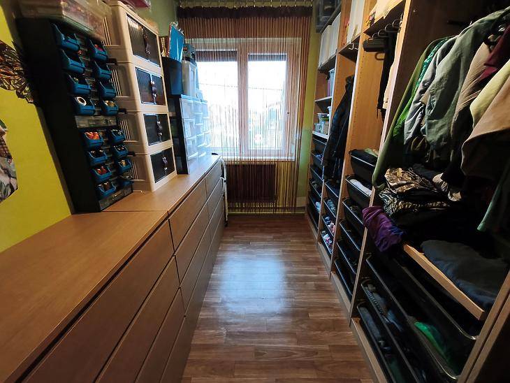 BUDAPEST XVII. KERÜLET – RÁKOSKERT, FORGALOMTÓL MENTES, NYUGODT MELLÉKUTCÁJÁBAN KÍNÁLUNK MEGVÉTELRE EGY 170 NÉGYZETMÉTERES, KÉTSZINTES, KÜLÖN BEJÁRATÚ, KÜLÖN ÓRÁZOTT ÖNÁLLÓ CSALÁDI HÁZAT 607 NÉGYZETMÉTERES TELEKKEL ÉS DUPLA ÁLLÁSOS KOCSIBEÁLLÓVAL. A HÁZ IDEÁLIS LEHET NAGYOBB CSALÁDOKNAK, VAGY AKÁR KÉTGENERÁCIÓS MEGOLDÁSKÉNT IS.Műszaki adatok:Építés éve: 1960-as évek és 1986. Az alsó rész B30-as, ikersejtes téglából épült, masszív beton alappal és födémmel rendelkezik. A felső rész 32-es poroton téglából épült, beton alappal és fa födémmel, amin 10 cm födémszigetelés is található.Fűtés és melegvíz:A földszinten FÉG gázcirkó és Hajdú bojler, az emeleten FÉG kombi cirkó biztosítja a fűtést és a meleg vizet. A nappaliban, az étkezőben és az egyik szobában hűtő-fűtő klímák kerültek felszerelésre.Kialakítás:Földszint: 3 szoba, konyha, fürdőszoba + mellékhelyiség, kamra, zárt terasz, műhely.Emelet: 4 szoba, amerikai konyhás nappali, fürdőszoba + mellékhelyiség, kamra, terasz.Burkolatok:Földszinten: a szobákban parketta, a közlekedőben, nappaliban és a konyhában linóleum, a kamrában, a fürdőben és a zárt teraszon pedig kőburkolat található.Emeleten: a szobákban, a nappaliban, az étkezőben és a kamrában linóleum, valamint padlószőnyeg, a konyhában és a fürdőszobában pedig kőburkolat van.Környék:Az ingatlan Rákoskert csendes mellékutcájában található. A közelben iskola, óvoda, gyógyszertár, orvosi rendelő és bevásárlási lehetőségek is elérhetők. Az M0-ás autópálya néhány perc alatt megközelíthető. A környéken közlekedik a 97E, 162, 197, 262-es buszjárat, valamint a 990-es éjszakai járat.Finanszírozás:Az ingatlan tehermentes, banki finanszírozással is megvásárolható, melyben irodánk ingyenes tanácsadással áll rendelkezésre.Irányár: 134,9 M Ft.Vevőink részére a közvetítés díjtalan.A hirdetésben szereplő adatok tájékoztató jellegűek.