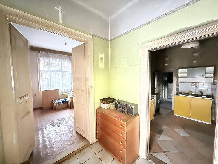 XVI. KERÜLETBEN, RÁKOSSZENMIHÁLY EGYIK CSENDES MELLÉKUTCÁJÁBAN KÍNÁLUNK MEGVÉTELRE EGY KÖRBEJÁRHATÓ 18,5 MÉTERES UTCAFRONTTAL RENDELKEZŐ, 57 NM ALAPTERÜLETŰ CSALÁDI HÁZAT, AMELY 497 NM-ES TELKEN HELYEZKEDIK EL. Az ingatlan az 1950-es években épült, tégla szerkezetű, fafödémes kivitelben, cserépfedésű tetővel. A homlokzaton 5 cm szigetelés található. A tetőszerkezet 2020-ban felújításon esett át, ekkor a cserépfedést, valamint a rossz állapotú gerendákat cserélték, így jelenleg jó műszaki állapotnak örvend.A ház elosztása praktikus és jól alakítható. A szobák faparkettával burkoltak, a többi helyiség járólapos. A fűtést elektromos hőtárolós kályha biztosítja, a meleg vizet villanybojler szolgáltatja. A nyílászárók fából vannak, dupla szárnyas kivitelben, az egyik szobában műanyagra cserélték a nyílászárót.A helyiségek között étkező, két szoba, konyha, fürdőszoba WC-vel, kamra padlásfeljáróval található, valamint a házhoz egy 10 nm-es, hátsó terasz is kapcsolódik, amely kellemes pihenőteret biztosít a kert felé. Az épület körbejárható, ami ritka adottság a környéken, és jelentősen növeli a használati komfortot.A telken könnyűszerkezetes garázs és egy megközelítőleg 20 nm-es tároló is helyet kapott, továbbá egy gyűrűs kút, amely kiválóan alkalmas kertlocsolásra. Parkolás a garázsban vagy a telken belül is megoldható.A telek adottságait tekintve: 18,5 méteres utcafronttal rendelkezik. LKE-1/XVI/O1 es övezetbe tartozik. Így 25%-a beépíthető, 5 méter épületmagasságig.A környék csendes, kertvárosias jellegű, ugyanakkor kiváló tömegközlekedéssel rendelkezik. Pár perc sétára elérhetők a 144-es, 174-es, 244-es és a 931-es buszjáratok, valamint bevásárlási lehetőségek is a közelben találhatók.Az ingatlan akár azonnal is birtokba vehető. Elsősorban készpénzes vásárlók részére alkalmas.Irányára: 79,9 MA hirdetésben szereplő adatok tájékoztató jellegűek.