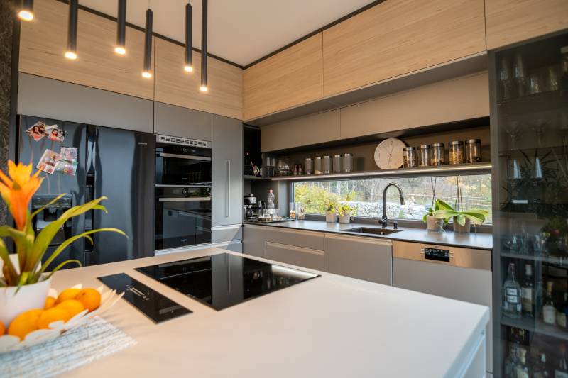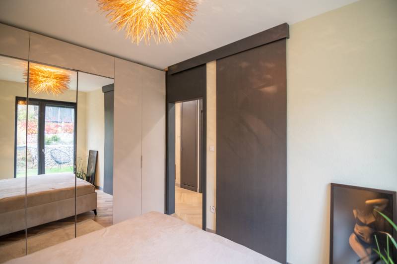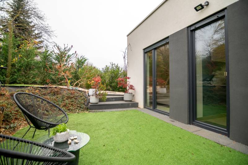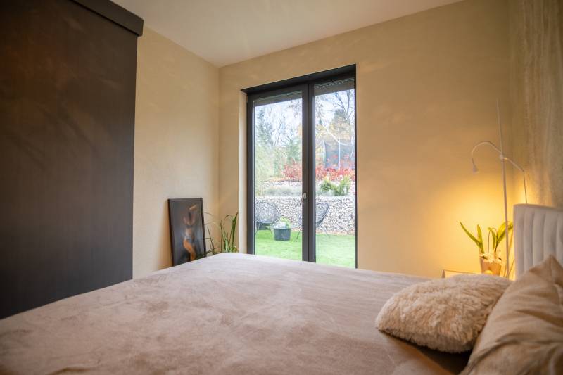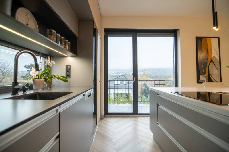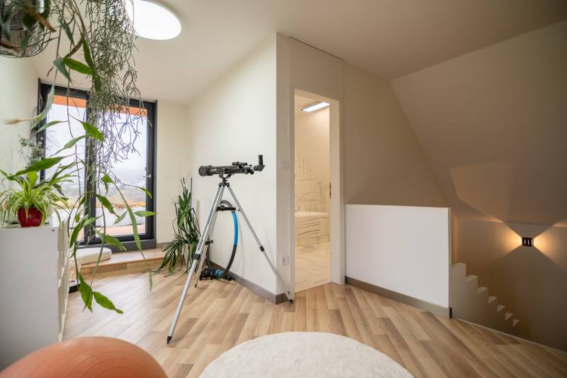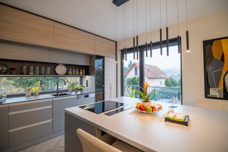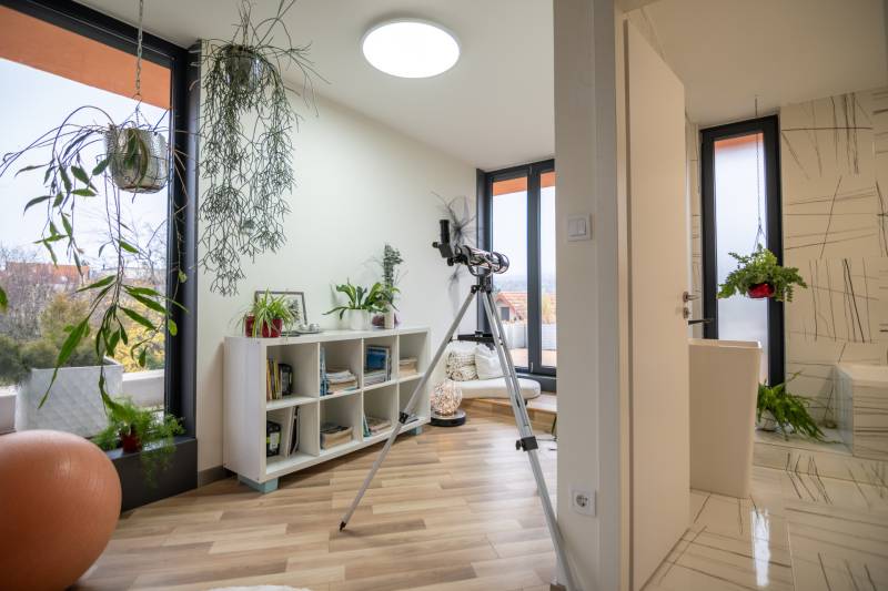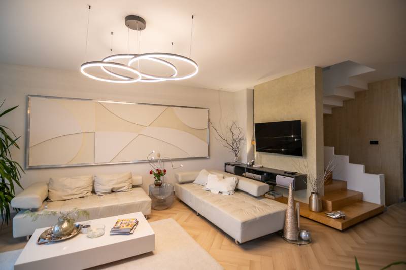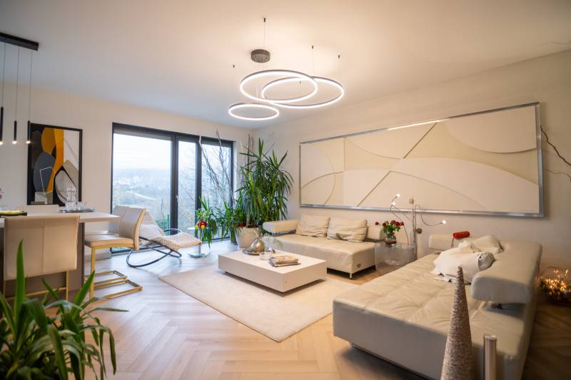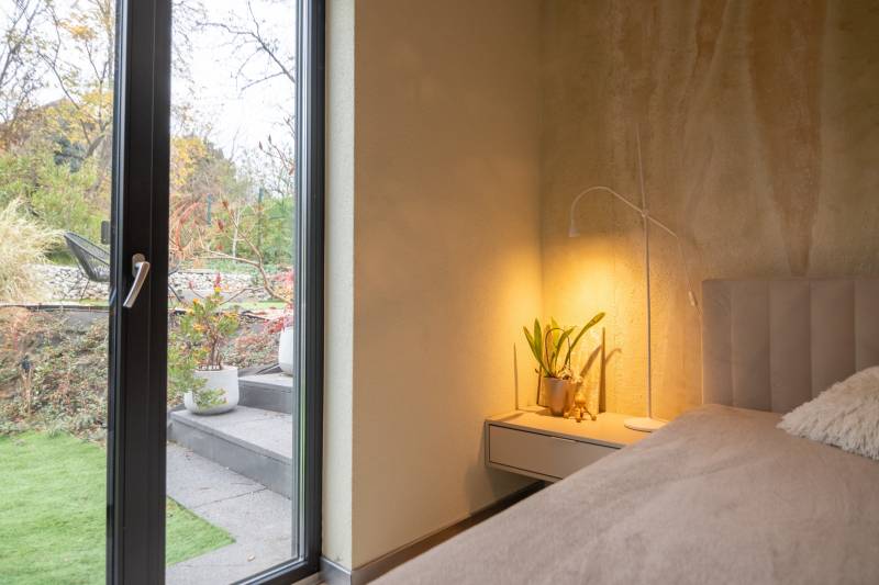 A III. kerület csendes, zöldövezeti részén, Ürömhegyen kínálunk eladásra egy minden részletében átgondolt, egyedi tervezésű otthont. A modern építészet és a természetközeli életstílus tökéletes harmóniában találkozik ebben a házban, amelyet kiemelkedő szakmai referenciákkal rendelkező belsőépítész alkotott meg.Az ingatlan nettó mérete 131,04 m² + 90 m² garázsszint + 5 m² erkély + 28 m² tetőterasz.A ház egy rézsűs telek felső részén áll, így a panoráma és a fény egyszerre része a mindennapoknak. A letisztult formák, természetes anyagok és a napfényes terek elegáns, mégis otthonos hangulatot teremtenek.FŐBB JELLEMZŐK- Prokoncept építési rendszer, német fa szerkezeti elemek- A+ energetikai besorolás, levegő-víz hőszivattyús rendszer- Padlófűtés, mennyezethűtés-fűtés, hővisszanyerős szellőztetés előkészítve- Rehau nyílászárók, mindenhol motoros redőnyök- 20 millió Ft értékű egyedi konyha és beépített bútorzat- Beépített gépek: AEG főzőlap, Whirlpool sütő és mikro, Gorenje hűtő- Klarstein elszívó, fekete csaptelepek, screenüvegek a vizes helyiségekben- Jacuzzi-előkészítés a panorámás tetőteraszon- 2 autós garázs, elektromos töltő és napelem-előkészítésKERT ÉS KÜLSŐ TEREKA ház körül kialakított, mintegy 400 nm-es kert a természetes anyagokra és a rendezettségre épül.A geotextíliás alapozás és a dísznövényeknek köszönhetően a kert szinte gondozásmentes, mégis élő, harmonikus zöldfelületet kínál.A teraszról a panoráma a főszereplő: az előtető véd az esőtől és a naptól, a csöpögő rendszer pedig automatikusan öntözi a növényeket.A tér kialakítása lehetővé teszi jacuzzi vagy kisebb medence elhelyezését is – a nyugalom és a kényelem kompromisszumok nélkül adott.LOKÁCIÓ ÉS KÖZLEKEDÉS- 218-as buszmegálló pár lépésre található, közvetlen kapcsolatot biztosít Óbudával (Szentlélek tér).- Az Aranyvölgy vasútállomás 5 perc sétára elérhető, ahonnan a Nyugati pályaudvar 15 perc alatt megközelíthető.- Autóval az Árpád híd 15 perc alatt elérhető, a Bécsi úti bevásárlóközpontok (Tesco, Aldi, Praktiker, Decathlon) pedig mindössze néhány percre találhatók.A környék infrastruktúrája fejlett: iskola, óvoda, gyógyszertár, kisboltok és sportlehetőségek is könnyen elérhetők. A Csillaghegyi strandfürdő és uszoda autóval néhány perc, akárcsak a közeli túraútvonalak és kilátópontok.Földszint:Tágas, 42 nm-es nappali–konyha–étkező nagy üvegfelületekkel és dél-nyugati tájolással.Teljesen gépesített, beépített konyha étkezőpulttal kombinált főzőszigettel.Két külön nyíló, kertkapcsolatos hálószoba és zuhanyzós fürdő vendég-WC-vel.A nappaliból közvetlen kijárat az árnyékos teraszra és a gabion zuhanyfallal kialakított pihenőkertbe.Emelet:Világos, egybenyitott tér, amely igény szerint master bedroom + gardróbként is kialakítható.Külön fürdőszoba háztartási funkcióval és tárolókkal.A 28 nm-es panorámás tetőteraszról a Hármashatár-hegy látványa tárul elénk, jacuzzi-előkészítéssel.Garázsszint / Gépészet:Kétállásos garázs, automata kapuval.Szauna, kondiszoba vagy tároló kialakítására alkalmas hátsó tér.Hőszivattyús padló- és mennyezeti hűtés-fűtés, előkészített napelem és elektromos autótöltő csatlakozás.Ez az otthon azoknak szól, akik értékelik a modern építészet időtálló formavilágát, a természetes fényt, és a letisztult, gondosan megtervezett tereket.Ürömhegy egyik legszebb pontján található, ahol a panoráma, a nyugalom és a minőség valódi értékké válik.Amennyiben felkeltette az érdeklődését ez minden részletében művészien kidolgozott ingatlan, kérem keressen bizalommal!Díjmentes, bankfüggetlen hiteltanácsadással támogatjuk vevő ügyfeleinket a számukra legelőnyösebb finanszírozási döntések meghozatalában.Opcionálisan igénybe vehető kiegészítő szolgáltatásainkkal – mint ügyvédi közreműködés, energetikai tanúsítvány vagy villamos biztonsági felülvizsgálat – teljes körű szakmai támogatást nyújtunk az adásvétel folyamatának minden egyes lépésénél.