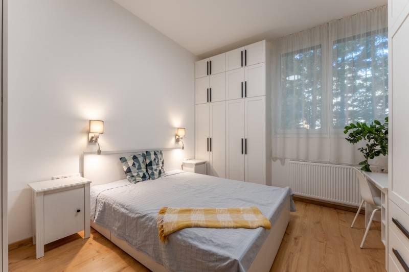 Kétlakásos, újszerű társasház földszintjén kínálom ezt a modern, napfényes, ízlésesen kialakított otthont. A tágas, praktikus elrendezés négy jól használható szobát és két fürdőszobát, vendég wc-t foglal magában. Minden helyiség ablakos — világos, barátságos légkört teremtve. A lakáshoz 475 m² saját kert tartozik, amely tökéletes családi pihenésre, kertészkedésre és szabadtéri programokra.ÜDV ITTHON!Főbb jellemzők- Tágas nappali és három háló (összesen 4 szoba)- 2 fürdőszoba + vendég WC, praktikus, családbarát elrendezés- Nappalihoz kapcsolódó terasz 475 m² saját kert- A lakás a hátsó kert felé orintált, intim és csendes- Két gépjármű részére kocsibeálló a telken- Klíma minden fontos helyiségben- Cirkó fűtés új, kondenzációs kazánnal, radiátorokkal, a hidegburkolatoknál padlófűtéssel, alacsony rezsi- Minden helyiség ablakos, nagy üvegfelületek és kedvező tájolás miatt rendkívül világos, napos- Igényes, magas minőségű burkolatok és beépítések; kiváló állapotú ingatlan- 3 rétegű műanyag nyílászárók, elektromos redőnyök, szúnyoghálóval, külső szigetelés (épült: 2020)Társasház, ami gyakorlatilag ikerház- Kétlakásos, rendezett társasház- Mindkét lakás teljesen szeparált, önálló albetét- Mindkét lakáshoz saját kertrész- Kamerás kaputelefonElhelyezkedésZöld környék, madárcsicsergős hangulattal, mégis kiváló infrastruktúra: bevásárlási lehetőségek (TESCO, Lidl, Stop Shop), szolgáltatóházak (HÜVI), nemzetközi és helyi iskolák (Amerikai, Francia, Waldorf), vendéglők (pl. Náncsi néni) és cukrászdák könnyen elérhetők. Kiváló közlekedés — egyszerre nyugalom és városi kényelem.Miért érdemes?Prémium anyagok, átgondolt elrendezés, nagy kert és világos terek — ideális választás családoknak, otthont kereső pároknak vagy befektetésnek.Várom hívását — nézze meg személyesen!Budapest, Buda, II. kerület, 2. kerület, Máriaremete, eladó lakás, újszerű, 4 szoba, 2 fürdő, terasz, saját kert, 2 kocsibeálló