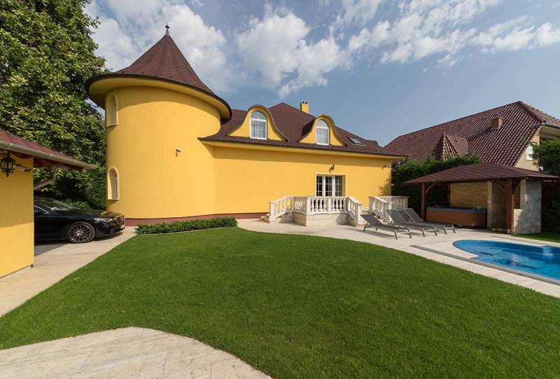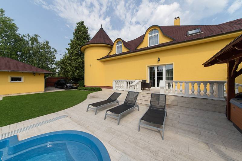 Az ingatlan bemutató videó anyaggal rendelkezik, kérésére szívesen eljuttatom a bemutató linket, az Ön számára…Eladásra kínálok a XVI. kerület frekventált, luxus kivitelezésű családi házas részén, egy 937 nm-es, buja, zöld növényekkel kerített, intim telken található, nettó 379 nm. alapterületű, 7 szobás, belső két szintes, LUXUS kivitelezésű, teljes körűen felújított, világos, nagy terekkel rendelkező családi házat.•Parkosított - öntöző és csepegtető rendszerrel ellátott - belső és külső kert•Kúria jellegű, családi ház•4 db terasz (20 nm, 18 nm, 14 nm, 4 nm)•2 db garázs (24 nm, 30 nm)•További, nyílt színi autóbeállási lehetőség•50 m3-es kerámia medence •1,7 m. víz mélység, áramoltató berendezés, fűthető, megvilágítható, fedhető medence…•Kerti fedett jakuzzi, tusolóval•Kerti, tágas grillház…•A kert határokig terjedő, profi internet kapcsolat•Külső-belső kamerarendszer…•Mozgás és nyitásérzékelő riasztórendszer…•Márvány burkolatok•Ólomkristály csillárok•Felső szinttel összenyitott nappali•Minden helyiségben Daikin, inverteres klíma berendezés…•Gépesített konyha, étkező kapcsolattal.•Kitűnő közlekedési és infrastrukturális adottságok…A képek magukért beszélnek. Sorolhatnám még az érveket, de jöjjön és keressen Ön érveket magának, hogy miért lesz ez a luxus ingatlan, az új Otthona!Higgye el, ezt Önnek is érdemes megtekintenie….!