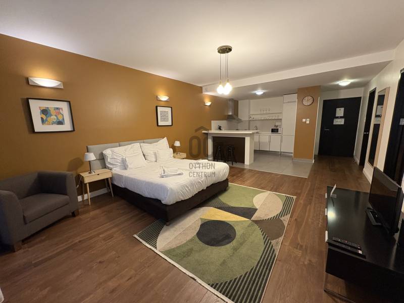 VI. kerület központi részén, pár lépésre az Operaháztól,2011 - ben épült apartman-szállodában, 1. emeleti, csendes utcára néző lakás kiadó.Az épületben 24 órás recepció, uszoda, wellness, fitness terem áll a lakók rendelkezésére.A lakás 63 m2, tágas nappali - konyha - étkezővel, külön hálószobával.A fürdőben kád és zuhanyzó is van.A lakás bútorozott, klimatizált.bérlet 1 éves szerződéstől 700 EUR / hó plusz közös költség és rezsi( van lehetőség rövidebb időre - 3, 6 hónap - is bérelni, magasabb bérleti díjért, ha rövidebb időre bérelné az ingatlant hívjon a részletekért. )kaució: 2 havi díjközös költség: 72e Ft / hó ( tartalmazza a wellness, fitness részleg ingyenes használatát és a 24 órás recepciót )Gépkocsi beálló igény esetén bérelhető az épületben.