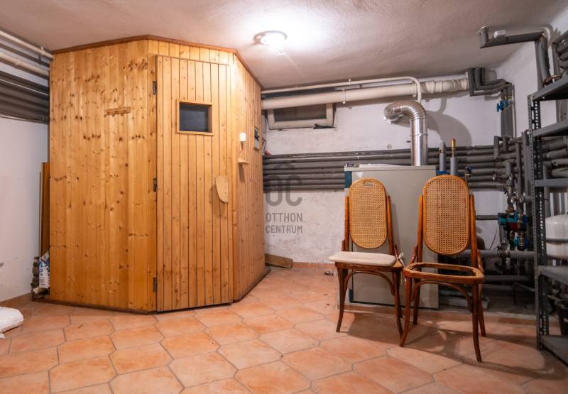 Budafokon, a XI. és a XXII. kerület határán, egy 286 nm lakóterületű, alápincézett, belső két szintes, remek adottságú, korának megfelelő állapotú családi ház eladó dupla garázzsal és intim kerttel.Környék:Budafok XI. kerülettel határos, lankás területén, csendes, kertvárosias, családi házakkal beépített részen járunk.Közlekedés:150B, 251, 251A, 251E buszok megállója fél percnyi sétával elérhető.Kert:Az utca felől a kíváncsi tekintetektől védett, dísznövényekkel, termő gyümölcsfákkal és virágokkal tarkított, gondozott terület övezi az építményt.A kert alatt zöld-tetős, 2 állásos garázs épültÉpület:Az 1993-ban épült, betonfödémes, tégla falazatú házat neves építésziroda tervezte, egyedi belsőépítészeti megoldások jellemzik.Sajátos térformálási és burkolati megoldások, faberakások és az ablakok formai megoldása különleges hangulatot sugároznak. A nyílászárók fa, kétrétegű üvegezésű, hőszigetelt ablakok.Földszintjén tágas nappali kandallóval, kilátással az óriási teraszra és a kertre, nagy hálószoba, konyha-étkező, kamra és tusoló-wc kapott helyet.Pinceszintjén, melyet a konyhából közelíthetünk meg, zuhanyzó, vízkezelő, finn szauna, kamra, kazán és mosókonyha van.Az emeletről a Szécsényi-hegytől a Citadellán át Pestig nyíló panorámát csodálhatjuk. Itt egy előtérből 3 nagy belmagasságú, külön bejáratú szoba és egy kádas fürdőszoba közelíthető meg a galériáról.Az ár alku nélküli végár.