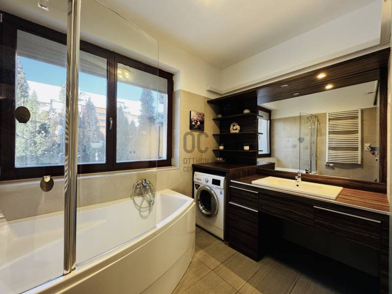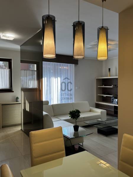 Kiadó Óbudán – kertkapcsolatos, prémium földszinti lakás saját beállóvalÓbudán, csendes, rendezett lakóparkban, egy 2012-ben épült, mindössze 8 lakásos társasház földszintjén kiadó egy 60 m²-es, bútorozott lakás, amelyhez 170 m²-es önálló, privát kert tartozik.Főbb jellemzők:60 m² lakótér + 170 m² saját kertSaját autóbeálló, zárt, elektromos kapun keresztülKét terasz, az egyik elektromos napernyővelAutomata öntözőrendszer és kerti tusoló a kertbenElektromos redőnyök mindenhol, szúnyogháló minden ajtónTelekom internet-előfizetésHelyiségek:Nappali üvegfallal leválasztott, gépesített konyhával(indukciós főzőlap, beépített gépek)Nappaliból nyíló, tolóajtóval zárható hálófülke / dolgozósarokAblakos fürdőszoba mosógéppel, zuhanyzóvalKülön WC kézmosóvalÉtkező, beépített gardróbok, kiváló pakolási lehetőségBújtatott radiátoros fűtésAz ingatlan egyedi tervezésű, minőségi bútorokkal berendezett, azonnal költözhető.Bérleti feltételek:Bérleti díj: 395.000 Ft / hóRezsi átalány: kb. 75.000 Ft / hó(tartalmazza a közös költséget, vizet, villanyt, áramot és WiFi-t)Közjegyzői okirat kötelező, melynek díja fele-fele arányban kerül megfizetésreMinimum 1 évre kiadó-Kisállat nem hozható- Az ingatlan elsősorban fiatal pár számára ideálisEz a lakás tökéletes választás azoknak, akik csendes, zöld környezetben, mégis kiváló infrastruktúrával rendelkező környéken keresnek kertkapcsolatos, prémium otthont.
