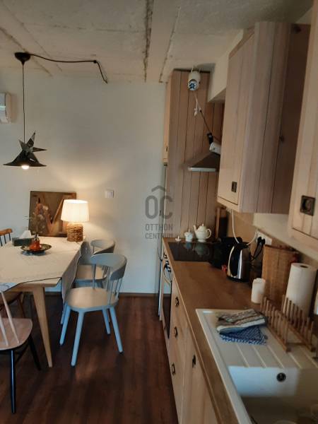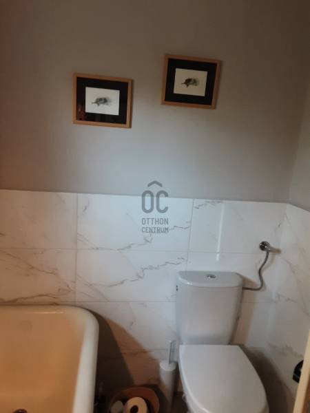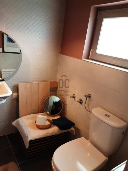 Kiemelt megbízás az Otthon Centrum kínálatában.A ház nettó 70 m2-es két szinten.Az alsó szinten amerikai konyhás nappali-étkező és vendég wc van, továbbá a tetőtéri feljáró.A tetőtérben két teljes-értékű hálószoba valamint fürdőszoba káddal és wc-vel.A ház műszaki tartalma.Újszerű épület.aljazat 10 cm-es grafitos szigetelés.külső szigetelés 10 cm nikecel.Cserép fedés alatta 10 cm nikecelFűtő hűtő - klímák mindkét szinten.A mellék helyiségekben elektromos fűtő panelek.Három fázisú áram és H tarifás óra.Három rétegű üvegezés fóliázott keretben.A 2159 m2-es telek szőlővel van betelepítve.Kérem hívjon amennyiben kérdése van vagy megszeretné tekinteni az ingatlant.Ez az ingatlan a \"Felező csomag\" megbízási portfólióhoz tartozik. Részletek az Otthon Centrum weboldalán.
