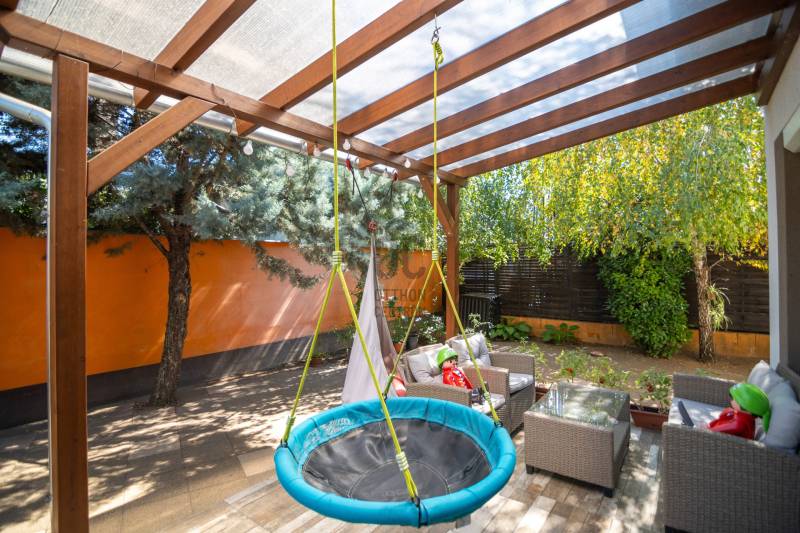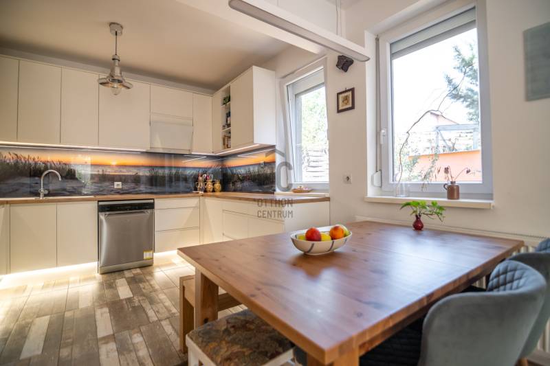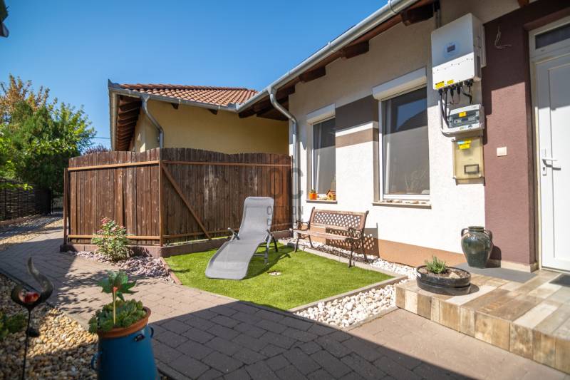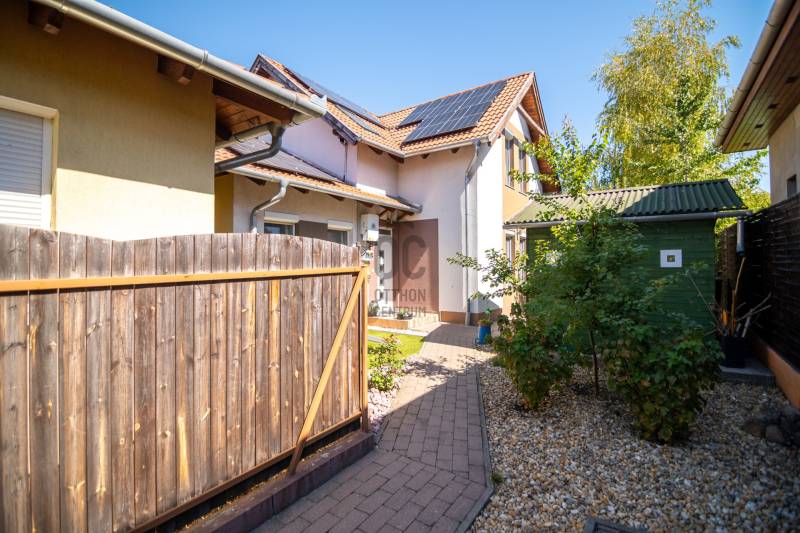 Napelemmel felszerelt ikerház eladó Újpéteritelepen!Megvételre kínálunk egy jó elosztású, jó állapotú kertes ikerház hátsó részét Újpéteritelepen!Az ingatlanról:✔️ 113 m2-es, nappali+ 4 hálószobás (Tulajdonilapon 96 m2-es, mert a garázst végül szobává alakították de így összesen 113 m2)✔️ földszinten: nappali-étkező-konyha, előszoba, fürdőszoba, 1 szoba.✔️ fedett terasz 12 m2✔️ Kert: 328 m2✔️ emeleten: 3 szoba, fürdőszoba, közlekedő.✔️ minden szoba külön nyíló✔️ ablakok műanyagok redőnnyel és szúnyoghálóval.✔️ nappali keleti tájolású✔️ fűtése: kombi cirkóval működik, mindenhol radiátorok illetve a földszinten a szobán kívűl mindenhol padlófűtésA ház 2016-ban épült 30 cm vastag téglából.A betoncserép tetőn elhelyezett napelemek segítik az áramszámla alacsonyan tartását.10 cm szigetelés.Az ingatlanhoz tartozik egy kerti tároló is.Jogilag társasház.Parkolni telken belül 3 autóval lehetséges illetve a ház előtt.Közelben minden megtalálható ami fontos a mindennapokhoz!✔️ CSOK+ és sima normál banki hitelre is alkalmas ingatlan!Ha felkeltette érdeklődésedet keress nyugodtan a hét bármelyik napján!