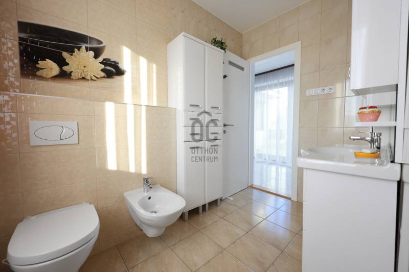 Kivételes lehetőség III. KERÜLET egyik legkedveltebb részén: eladó egy háromszintes, energiatakarékos, 2017-ben épült családi ház a Harsánylejtő I ütemében! A 374 nm hasznos alapterületű ingatlan igény szerint kétgenerációs otthonná is alakítható, így ideális választás nagycsaládosok, összeköltözők vagy akár vállalkozásra nyitott vevők számára is.Örökpanoráma, saját telek, természetközeli életérzésA 1034 nm-es, körbekerített, önálló telek elhelyezkedésének köszönhetően a házból lenyűgöző, örök körpanoráma nyílik a Pilisi Völgyre és a környező hegyekre. A déli tájolás bőséges természetes fényt biztosít egész nap, míg a hatalmas ablakfelületek, teraszok, és az 81 nm-es járható tetőkert különleges térélményt nyújtanak.Minőségi kivitelezés – földrengésbiztos szerkezetA ház építése során kizárólag válogatott, prémium minőségű anyagokat használtak. A főfalak 38 cm-es Porotherm KLIMA tégla, mely önmagában 8 cm-es hőszigetelést tartalmaz. Ezt egészíti ki a 3 cm-es levegőréteg és 5 cm vastag kőzetgyapot hőszigetelés. A födémek monolit vasbeton szerkezetűek, fokozott víz- és hőszigeteléssel.Átgondolt belső tér – maximális komfortAlsó szint: garázs (32 nm), 2 kisebb szoba, háztartási helyiség (vízkiállással)Földszint: amerikai konyhás nappali (Carrara márvány belső párkányokkal), dolgozószoba, tágas fürdőszoba (kádas)Emelet: 3 hálószoba, zuhanyzós fürdő, külön mosó- és szárítóhelyiség, nagy terasz növényágyásokkalTetőszint: járható tetőkert, kialakított növényágyásokkal – tökéletes relaxációs térModern technológia és biztonság6 kamerás megfigyelőrendszerKomplett riasztórendszer távfelügyelettelMotoros alumínium redőnyök, Hörmann biztonsági bejárati ajtó, távirányítású garázskapuKert és parkolásAz udvar részben térkövezett, fagyálló burkolattal ellátott. A belső garázs mellett fedett, külső beálló is rendelkezésre áll. A gondozott kert gyümölcsfákkal, bokrokkal, valamint egy praktikus kerti tárolóval egészül ki.Közlekedés és infrastruktúraBKV megálló: 5 perc sétaMÁV vasútállomás: 10 perc sétaA közelben óvoda, iskola, bevásárlási lehetőségek (plázák, boltok)- Felkeltettem érdeklődését? Hívjon bizalommal és válaszolok minden kérdésére.- Zuglói, vagy akár országos kínálatunkból megtaláljuk Önnek a legmegfelelőbbet.- Amennyiben jelenlegi ingatlana értékesítésében is segítségére lehetek, kérem, forduljon hozzám bizalommal!- Az ingatlanok megvásárlását ingyenes hiteltanácsadással és ügyintézéssel, valamint, igény esetén, korrekt ügyvédi háttérrel segítjük!- Ajánlatunk nem csak a nálunk vásárolt ingatlanok esetében érvényes. Hívjon, és mi megoldjuk minden ingatlanügyét.