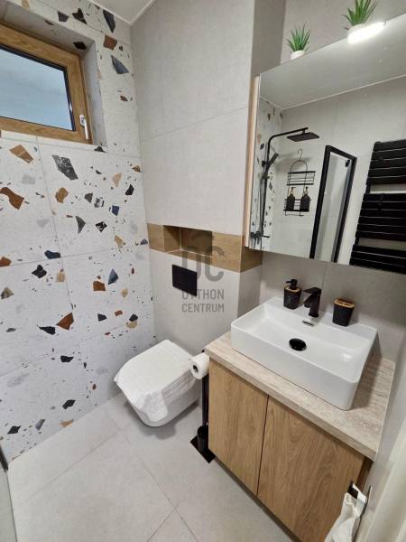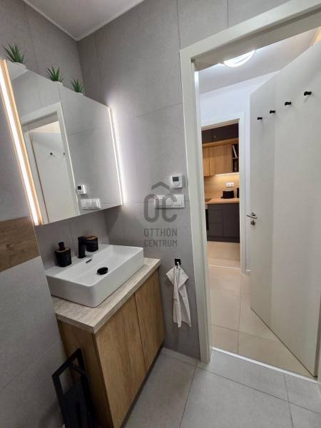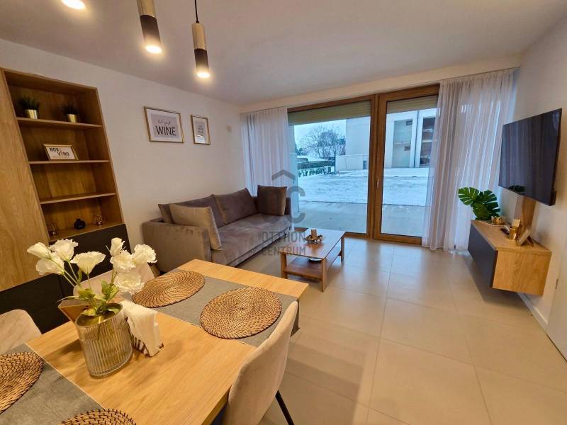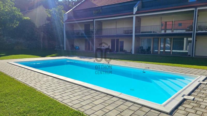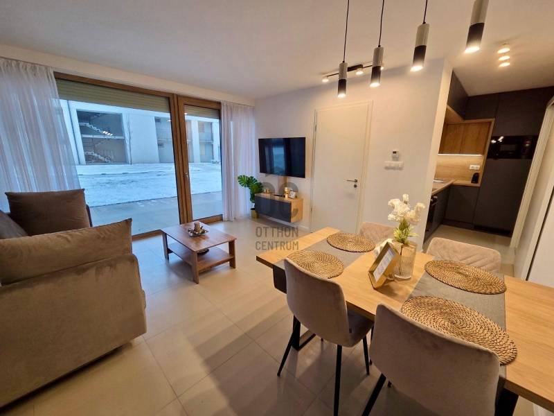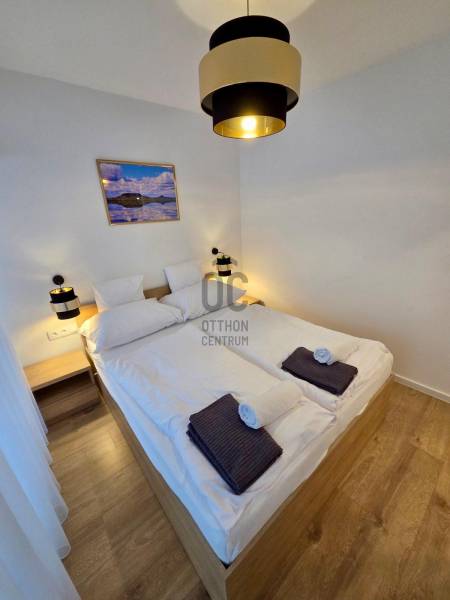 Badacsonytomaj szívében, a Balaton egyik legkeresettebb borvidékén kínálunk megvételre egy új építésű, kertkapcsolatos prémium lakást, amely egyszerre szolgál exkluzív magánrezidenciaként és azonnal hasznosítható, bejáratott befektetésként.Az elegáns, mindössze 30 lakásos, medencés lakópark földszintjén elhelyezkedő ingatlan nappali + hálószobás kialakítású, 38 m²-es belső térrel, amelyhez egy 15 m²-es fedett terasz és közvetlen kertkapcsolat társul. A gondosan kialakított zöld környezet és a sós vizű, fűthető közösségi medence valódi resort-élményt nyújt – mindezt Badacsonytomaj központi elhelyezkedésének kényelmével ötvözve.A lakás teljeskörűen berendezett, egyedileg tervezett bútorokkal, letisztult, modern enteriőrrel és garanciális, magas minőségű háztartási gépekkel. Az ingatlan minden részlete a kényelmet és az időtálló eleganciát szolgálja, így azonnal költözhető vagy tovább üzemeltethető, bármilyen további beruházás nélkül.A korszerű mennyezeti hűtés-fűtés rendszer diszkrét és energiatakarékos megoldást biztosít, amely egész évben magas komfortérzetet nyújt.Kiemelkedő értéke, hogy az ingatlan NTAK regisztrált, 4 csillagos minősítésű magánszálláshelyként működik, stabil vendégkörrel és bizonyított működéssel. Ritka lehetőség azok számára, akik azonnali bevételt termelő balatoni befektetést keresnek, kompromisszumok nélkül.A lakáshoz kizárólagos használatú, térkövezett udvari gépkocsi-beálló tartozik, amely külön megvásárolható.Ez az ingatlan nem csupán egy lakás, hanem életstílus- és befektetési döntés: minőség, elhelyezkedés és hozam egyensúlya a Balaton egyik legértékesebb pontján.Az adatok kizárólag a megbízóink által rendelkezésünkre bocsátott információkon alapulnak.Fentiekre tekintettel, az adatok teljességéért, helyességéért és aktualitásáért nem vállalunk felelősséget.Az árváltozás, adatmódosítás és közbeni értékesítés jogát fenntartjuk, mindezekért jogi felelősséget nem áll módunkban vállalni