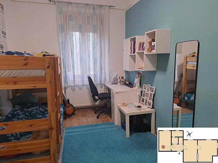 XV. KERÜLETBEN, RÁKOSPALOTÁN, MÁV LAKÓTELEPEN, 58 M2-ES, 1. EMELETI TÉGLALAKÁSAZ ÉPÜLET JELLEMZŐI:2X6 lakásos társasház körbekerített udvarban helyezkedik el, ami elektromos kapuval zárt. A lakáshoz 200 m2 saját használatú kert és külön autóbeálló is tartozik. Az épületben zárható és száraz pince és padlástér ad plusz teret.A LAKÁS JELLEMZŐI:A lakásba belépve elsőként az előszobába térünk, ahonnan nyílik egy hálószoba, a kádas fürdő, külön nyíló wc és az étkezős konyha, ahonnan tovább juthatunk a nagyobb hálószobába. A lakás néhány éve részleges felújításon esett át. Új burkolat a szobákban és az előszobában, többségében ki lettek cserélve a szaniterek, új IKEA konyhabútor, konyhai gépesítés és egy konyhai víztisztító lett beépítve, ami a csapvíznél és az ásványvíznél tisztább, egészségesebb ivóvízről gondoskodik. Az elektromos hálózat felújítása már korábban megtörtént, a teljesítmény 3X16 amperre lett bővítve, amely lehetővé teszi a nagy háztartási gépek egyidejű használatát. Az ablakok modern, 3 rétegű üvegezéssel ellátott faablakok, melyeket fém redőnnyel és szúnyoghálóval szereltek fel. 2022-ben kívülről lett szigetelve a lakás. A gázkazánok javítása folyamatban van. A lakásban megőrzésre került egy cserépkályha, mely télen nem csak hangulatos, de jó meleget is képes biztosítani. A nagyobb szoba nyáron légkondicionálóval hűthető. A konyha gépesítése (mosogatógép, hűtő), a mosógép és a szárító a vételár részét képzi.PARKOLÁS:Beállóhely a körbekerített udvarban, továbbá díjmentesen közvetlenül az épület előtti, forgalommentes utcaszakaszon.KÖZLEKEDÉS:Közelben közlekedik a 225, 5, 231, 231B, busz és a 996, 996A, 973 éjszakai járat, valamint 62, 62A, 69 villamos.IRÁNYÁR: 74,9 M FtFINANSZÍROZÁS:Az ingatlan banki finanszírozással is megvásárolható, melyben irodánk ingyenes tanácsadással áll rendelkezésükre!VEVŐINK RÉSZÉRE A KÖZVETÍTÉS DÍJTALAN!!Amennyiben eladná saját ingatlanát, több mint 10 éve működő, kifejezetten a kerületre szakosodott irodánktól, INGYENES ÉRTÉKBECSLÉST kérhet.A hirdetésben szereplő adatok tájékoztató jellegűek.