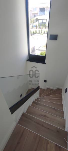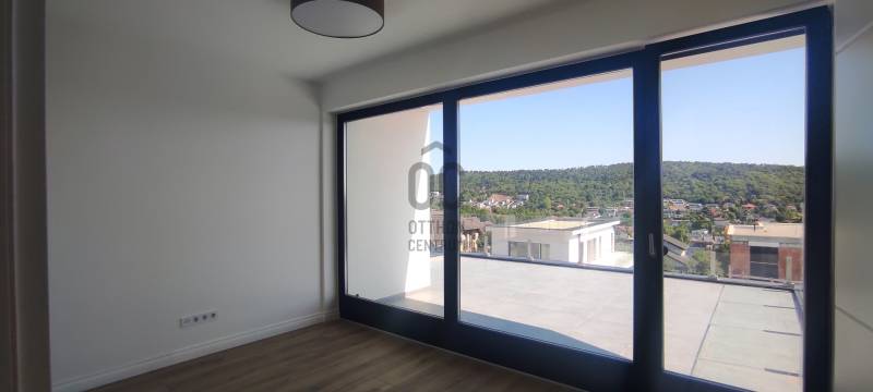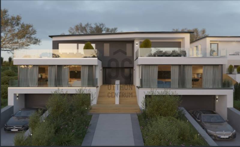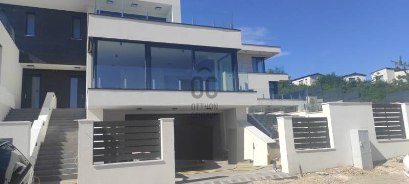 III. Aranyhegy örök panorámás részén új építésű 4-szobás ikerházi lakás - garázzsal, saját kerttel - eladó.KÖRNYEZETAz ingatlan Aranyhegy tetején található, ahonnan csodálatos örökpanoráma nyílik a környező dombokra, erdőkre és a távolabbi tájra.A környéken csupa újépítésű családi- és társasház található, így nagyon rendezett, kellemes. Távol esik valamennyi fűúttól, igy roppant csendes is. Ennek ellenére jó a közlekedése, 3 perc könnyű sétával elérhető a BKK buszjárat.ÉPÜLETMinimál stílusú, modern épület a ma elérhető legjobb alapanyagokból.Az ikerház egyik fele elkelt, a másik fele még rendelkezésre áll. Bruttó alapterülete teraszokkal együtt 206 nm. A lakás nettó alapterülete 146 nm, összesen 3 szinten.A garázsban 2 gépkocsinak van beállási lehetőség, plusz motor, kerékpárok elférnek. Innen külső lépcsőn lehet feljutni a földszintre.A földszinten a nappali-konyha-étkező egysége mellett egy hálószoba fürdőszobával is helyet kapott, az emeleten pedig további két hálószoba fürdővel.MŰSZAKI PARAMÉTEREK•Hőszivattyú, (hűtés fűtés). mennyezet illetve padló.•Garázs fűtött (padló)•Napelem előkészítés.•Részben okos otthon•Nyílászárók 3 rétegű üveg, tiszta fa nyílászárók.•Bejárati ajtók tiszta fa.•Villeroy vagy Duravit fajanszok•Hansgrohe vagy Grohe csaptelepek•Automata redőnyrendszerek (Atenád)•Szúnyoghálók, pliszé szúnyoghálók•Elektromos autó töltő kiállás• önálló dupla garázs!A kivitelezés befejeződött. Burkolatok, szaniterek is bekerültek már,sőt egy csodálatos konyha is az ár részét képezi. Most még néhány apróság is beépítésre kerül,- jöjjön el és nézzük meg együtt!