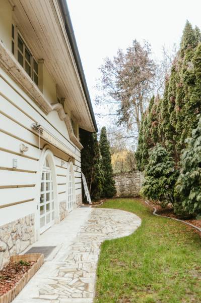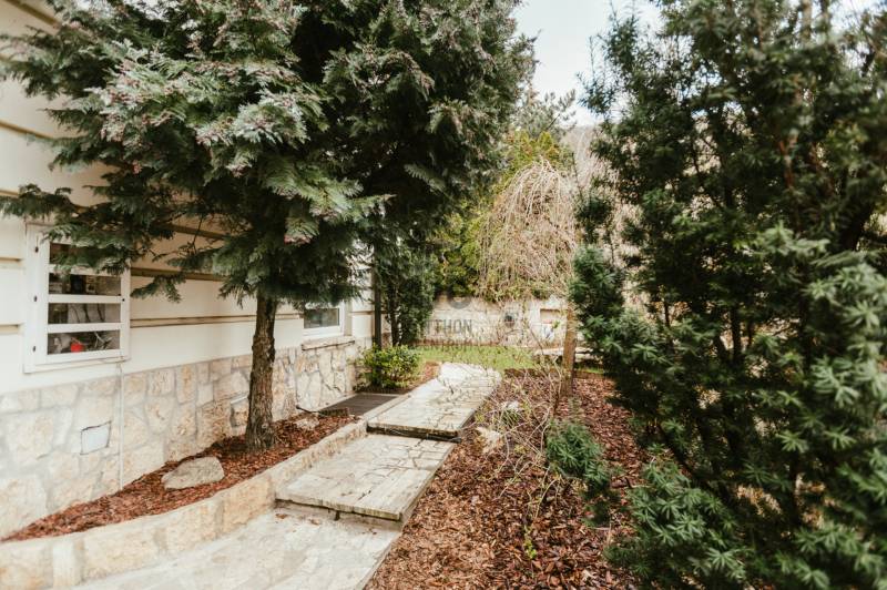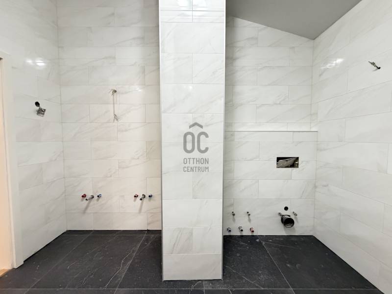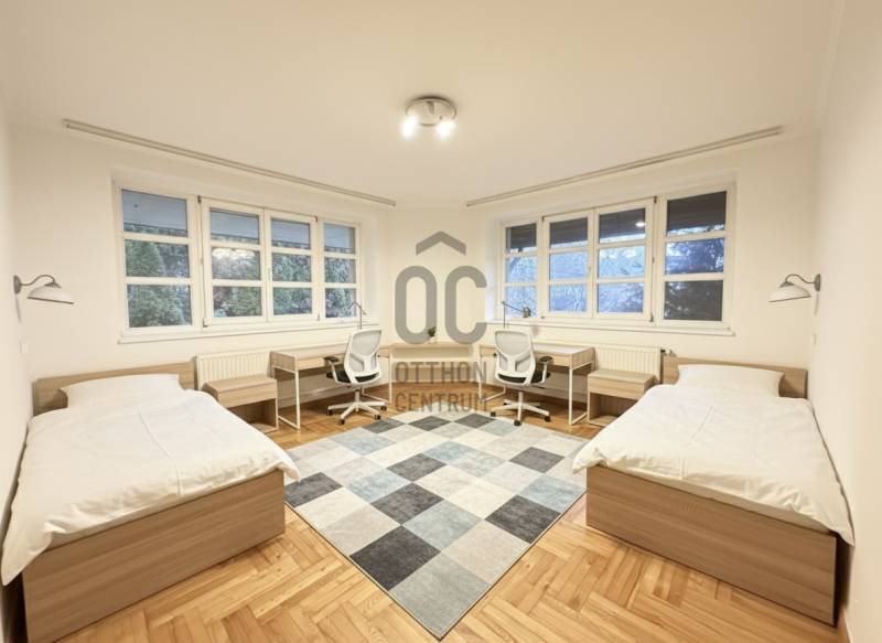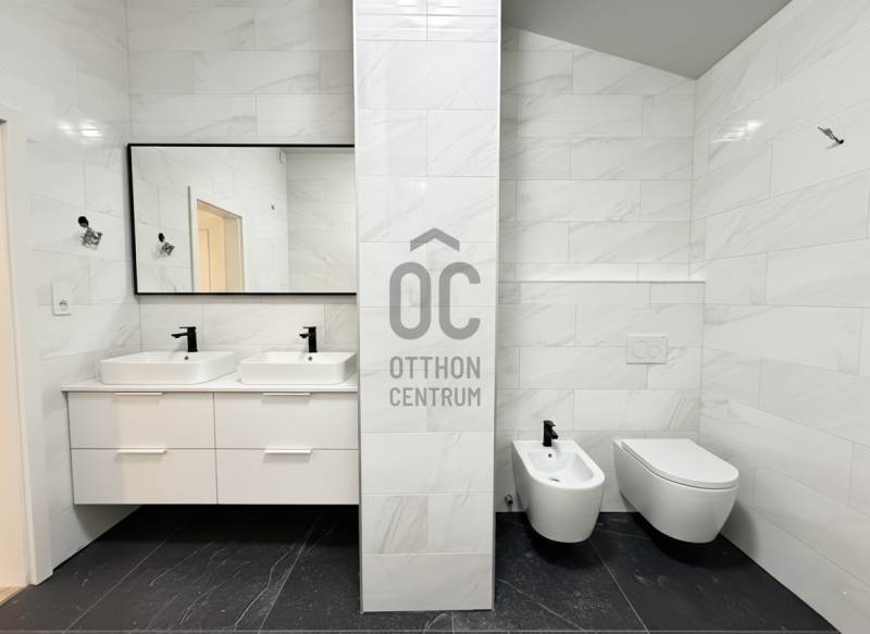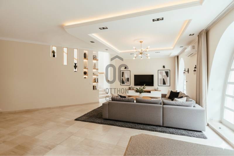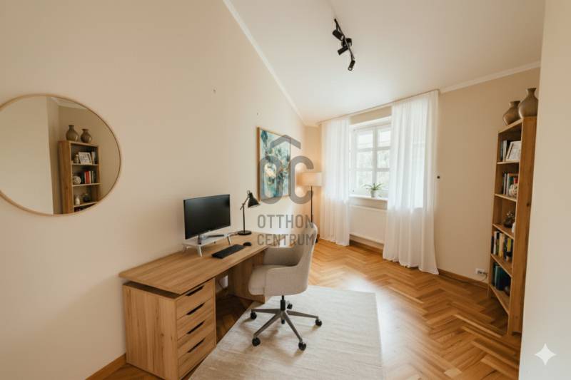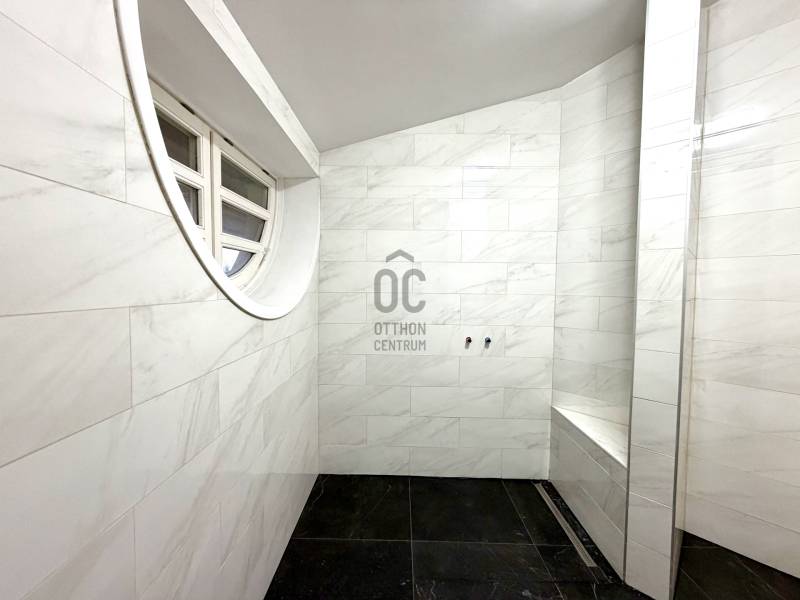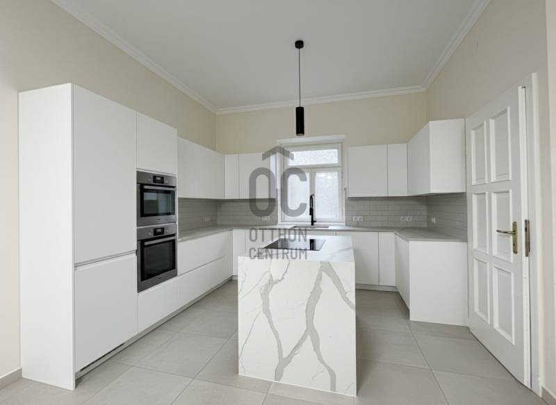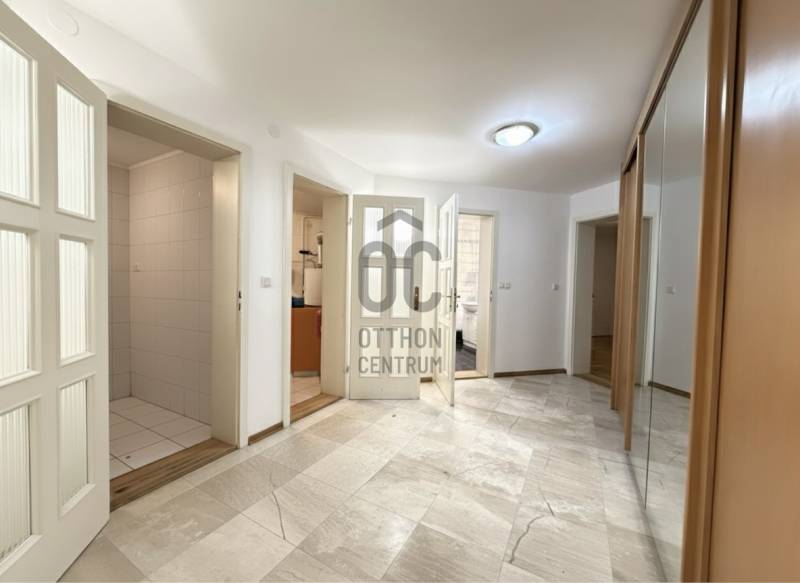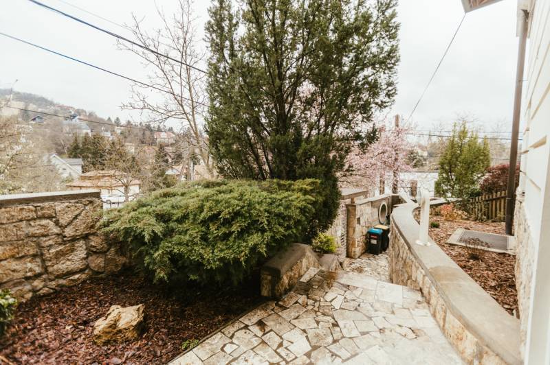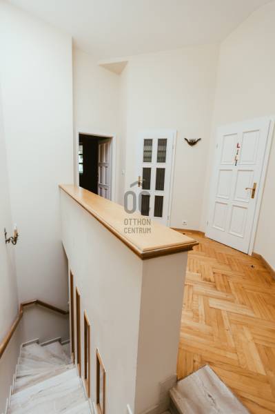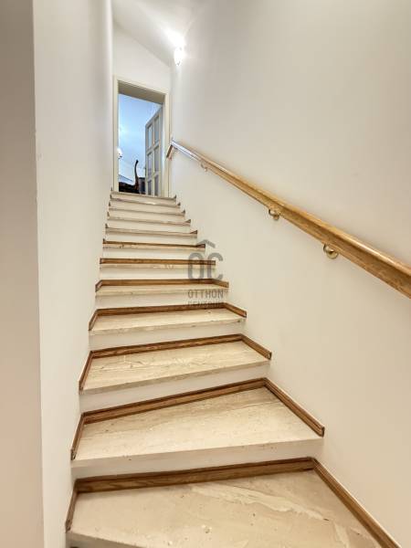 Eladó egy 262 m²-es, teraszos, kertkapcsolatos, dupla garázsos ikerházfél Budapest egyik legkedveltebb, zöldövezeti részén, Máriaremetén.Már az első pillanatban érezni, hogy ez az otthon más: A háromszög alakú alaprajz egyedi, modern térélményt kínál, amit a 3,2 méteres belmagasságú, 66 m²-es amerikai konyhás nappali tovább fokoz. A lenyűgöző térérzete a nagy üvegfelületekkel és a kertre nyíló terasszal a napfény és a természet harmóniáját teremti meg.A gondosan ápolt, intim kert öntözőrendszerrel és kerti sütővel ideális helyszíne a pihenésnek és a közös pillanatoknak.A márványlépcsőn felérve az emeleten három hálószoba, egy gardrób és egy felújított, berendezésre váró fürdőszoba kapott helyet, amelyet új tulajdonosa saját ízlésére formálhat.Az alsó szinten két természetes fénnyel megvilágított, parkettás helyiség, egy mosókonyha, kazánház, kamra és egy további fürdőszoba szolgálja a kényelmet.A 34 m²-es, kétállásos garázs a vételár részét képezi.A környék csendes, mégis kiváló közlekedésű: a buszmegálló néhány lépésre található, a Hűvösvölgyi végállomás percek alatt elérhető.A közelben bevásárlási lehetőségek, nemzetközi iskolák, óvodák, kirándulóhelyek, sportpálya és uszoda kínálnak magas életminőséget. A francia nemzetközi iskola gépkocsival kb. 3-5 perc alatt elérhető. A SEK Budapest International School kb. 6-8 perc alatt elérhető és a The British International School Budapest gépkocsival kb. 10-12 perc a menetidő.A ház azonnal költözhető, jelenleg bútorozatlan.A képeken látható berendezés egy része digitális enteriőrtervezés, mely az otthon lehetőségeit szemlélteti!Egy ház, amely nem követi a megszokott formákat – hanem megteremti a sajátját.Ha Ön egy tágas, világos, karakteres otthont keres Budapest egyik legjobb levegőjű környékén, ez az ingatlan tökéletes választás.
