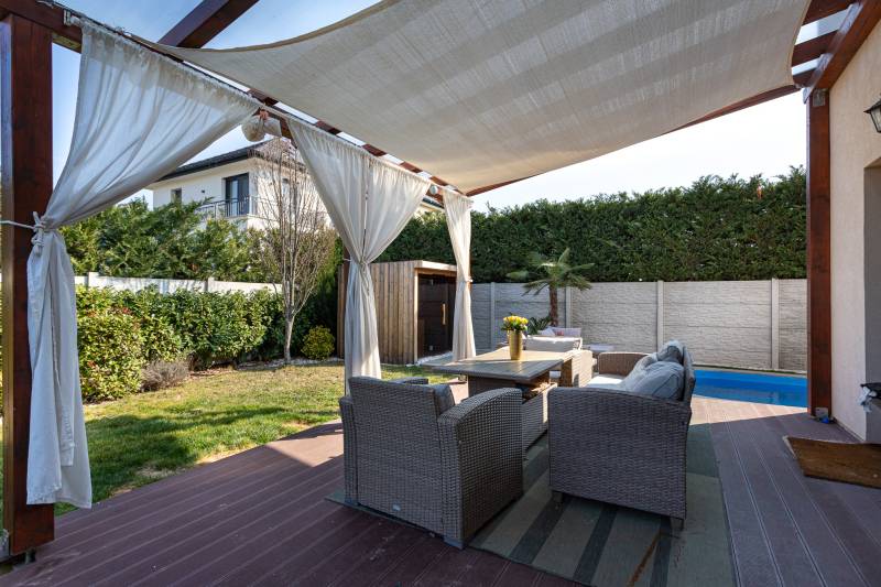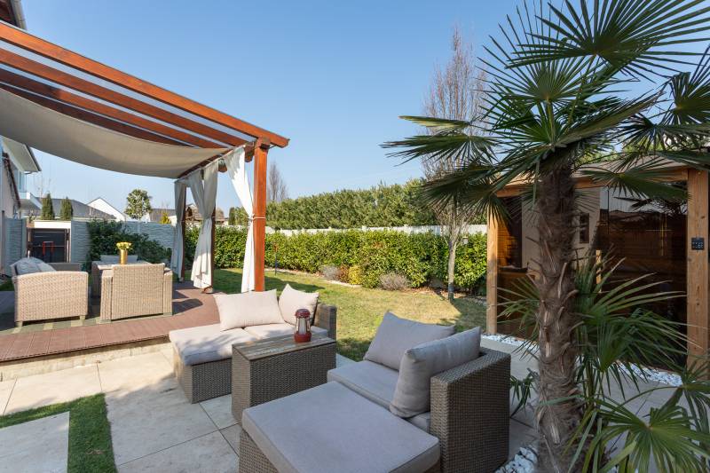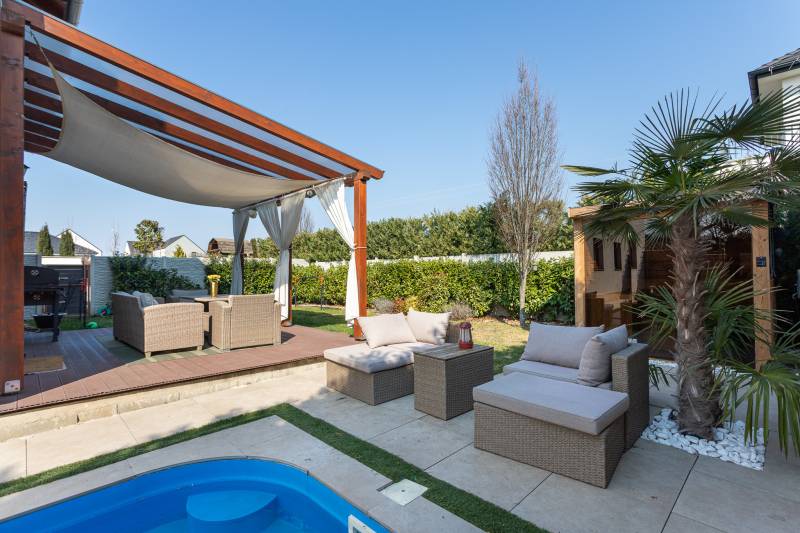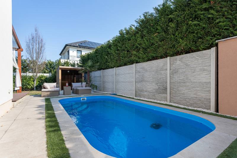 MEDENCÉS, SZAUNÁS ÚJSZERŰ IKERHÁZ ,MAGAS MŰSZAKI TARTALOMMAL, SOK EXTRÁVAL!Kizárólag nálunk XVIII. kerület új lakóparkjában almáskertben 2016-ban épült,142m2-es, nappali plusz 5 félszobás, kétszintes, ikerház 2 fürdőszobával,2 WC-vel, fedett terasszal (20m2-es),garázzsal (16m2-es), gépkocsibeállóval, 285m2-es önálló kertrésszel eladó.A telken a házak egymás mögött helyezkednek el, csak a garázsoknál érintkeznek, nincs közös fal.A ház könnyűszerkezetes,külső teherhordó falak fa vázoszlopok fa merevítéssel, közte 15cm kőzetgyapot szigeteléssel, külső dryvet szigetelés 10cm, könnyűszerkezetes födémmel, műanyag nyílászárókkal (kétrétegű,kívül barna ,belül fehér színben),natúr színű betoncseréppel.Extrák:-konyhabútor beépített gépekkel , alsó,felső fürdőben beépített szekrények- 8,5 kW-os napelem rendszer, szaldóval 2033-ig. Inverter 12 kW-os, tehát bővíthető a rendszer- teljes ház klimatizált, 2 db 3,5 kW Gree hűtő fűtő klíma, 1 db 2 kW hűtő fűtő klíma- villany: 3x32A, H tarifa: 1x32 A- LG hőszivattyú 12kW, 300 literes HMV tartály- padlófűtés (földszint és emelet is)- fatüzelésű kandalló, külső levegő bevezetéssel és hőtároló rendszerrel- elektromos kapu és elektromos garázs kapu- riasztó rendszer , szúnyogháló- automata öntözőrendszer- automata kert világítás - kombinált szauna: 4-5 fős, prémium faanyagokból épült, üvegpanorámás infra és finn szauna- medence: 6x3-as, 150cm mély, hőszivattyús fűtés (9kW), sóbontós (gondozásmentes) rendszer, ellenáramoltató rendszer úszóedzésekhez, medence világítás-kertben biztonsági kamera-fedett terasz pergolával (20m2-es)-vízóra: normál és locsoló óra, -rugalmas költözés ,jogilag rendezett , külön helyrajzi számon lévő ingatlanMagyarország piacvezető hitelközvetítője által egyedi kamatkedvezményekkel és bankfüggetlen, díjmentes hitelügyintézéssel is segítjük vásárlását. CSOK plusz hitel és piaci alapú hitel igénybe vehető az ingatlanra. Amennyiben minimum 25 millió Ft. összegű ingatlanfedezetes hitelt vesz igénybe általunk 500 Euro értékű Club Karos Spa**** wellness utalványt adunk ajándékba. (Az akció kizárólag a Money Network ügynökhálózatán keresztül beadott és folyósított jelzáloghitelekre érvényes.) Hívjon bizalommal!