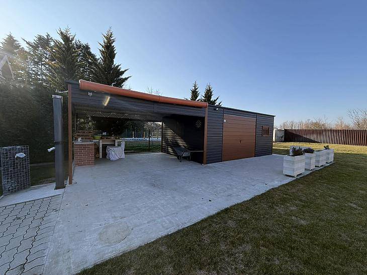XVII. KERÜLETBEN, RÁKOSCSABA–ÚJTELEPEN KÍNÁLUNK MEGVÉTELRE EGY 235 NÉGYZETMÉTERES ALAPTERÜLETŰ, KÉTGENERÁCIÓS, ÖNÁLLÓ CSALÁDI HÁZAT, AMELY EGY 1078 NÉGYZETMÉTERES TELKEN HELYEZKEDIK EL. A HÁZHOZ TARTOZIK EGY 2 ÁLLÁSOS GARÁZS ÉS 3 AUTÓ SZÁMÁRA BIZTOSÍTOTT FEDETT GÉPKOCSIBEÁLLÓ. AZ INGATLAN CSENDES, KERTVÁROSIAS KÖRNYEZETBEN TALÁLHATÓ.A HÁZ JELLEMZŐI:A ház beton alapra épült, betonfödémmel és tégla falazattal. Az építés 2001-ben történt, az emeleti szint pedig 2004-ben került befejezésre. A nyílászárók többsége korszerű műanyag, a tetőtéri ablakok fából készültek. A homlokzat és a tető egyaránt szigeteléssel ellátott, ami hozzájárul az energiahatékonysághoz.Az otthon melegéről gázkazán és vegyestüzelésű kályha gondoskodik, a komfortérzetet pedig hűtő-fűtő klíma is növeli, így az ingatlan minden évszakban kellemes hőmérsékletet biztosít.BURKOLATOK:Földszint: a szobák laminált parkettásak, a nappali + étkező, fürdőszoba, kamra, konyha pedig kerámia lappal burkolt.Emelet: szobák laminált parkettásak, a közlekedő, fürdőszoba, előtér és kazánház pedig kerámia lappal burkolt.A KERT JELLEMZŐI:A gondozott, 1078 m²-es kert locsolórendszerrel és saját kúttal rendelkezik, ami megkönnyíti a zöldterület fenntartását. Az udvaron kétállásos, fedett kocsibeálló található, amely kényelmes parkolást biztosít.A kert további különlegessége egy modern, fém szerkezetű kerti tároló, valamint egy hangulatos, fedett terasz grillsarokkal, mosogatóval és pulttal, amely ideális helyszínt nyújt családi és baráti összejövetelekhez.KÖRNYÉK:Közelben található iskola, óvoda, gyógyszertár, orvosi rendelő bevásárlási lehetőség. Az M0-ás autópálya pár perc alatt közelíthető meg. Közelben 198, 176 E buszjáratok, valamint, a 998-as éjszakai járat érhető el.IRÁNYÁR: 239.9 M FT A ház hitelre is megvásárolható, melyben irodánk ingyenes tanácsadással áll rendelkezésükre!VEVŐINK RÉSZÉRE A KÖZVETÍTÉS DÍJTALAN!A hirdetésben szereplő adatok tájékoztató jellegűek.