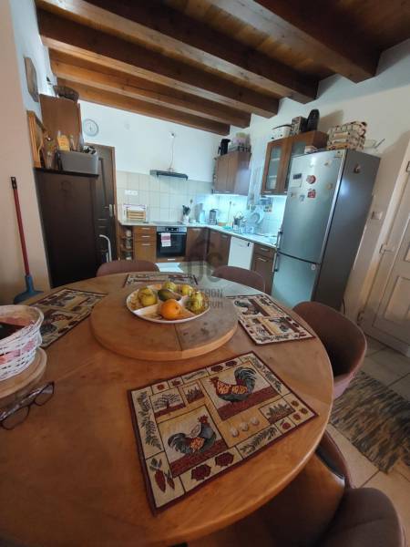 ELADÓ RÉVFÜLÖPÖN REMEK ÁLLAPOTÚ, KÜLÖNLEGES ELHELYEZKEDÉSŰ TÖBB GENERÁCIÓS, PANORÁMÁS NYARALÓ . AZ OTTHON CENTRUM KIEMELT AJÁNLATA !A gyönyörű, gondozott kert ideális, 1266 m2 nagyságú, közel négyzet alakú. Páratlan nyugalmas környezet: Közforgalomtól védett, csak két tulajdonos által használt, zárt magánúton közelíthető meg a belterületi telek, a Kacsajtosi útról, az utcafronttól 60 méterre. Pár perc séta az erdő, a központ és a strand gyalog 10/15 percnyire van. Az épület főbb jellemzői:A ház déli irányba, a tó felé tájolt. 2009-ben épült téglából, cserép fedéssel, nyílászárói műanyagok, Új, a 3 fázisú földkábeles villanyvezeték. Fűtése egyrészt a központi helyiségben lévő takarékos üzemű, megbízható klasszikus skandináv tömegkályhával történik, a földszinti fürdő és az egész tetőtér elektromos padlófűtésű. Emellett hűtő/fűtő klímákkal is temperálhatók a helyiségek. Gáz igény szerint az utcáról elérhető. Csatorna nics, a szennyvíztároló modern, biológiai lebontású.A múlt évben megújult mindhárom fürdőszoba, a tetőtéri halószoba elé egy 11 m2-es terasz készült. Alatta félkör alakú, nagyrészt fedett teraszt alakítottak ki. A ház mellett hangulatos, fa szerkezetű fedett nyári pihenő van, mellette apácarácsos fatároló. A kert alján 3 autó számára alkalmas kocsibeálló létesült. Az épületet tágas terek, és kicsi meghitt kuckók teszik idilli nyaralóvá / otthonná akár nagyobb család, illetve több generáció számára. Használati beosztása:A földszintet L alakú nappali - étkező - konyha foglalja el, valamint fürdő toalettel. Járólapokkal borított lépcső vezet a félemeletig, ahol egy kis közlekedőből hálószoba, hálófülke és néhány további lépcsőfokkal egy háló galéria érhető el. Szép, új falépcső visz a tetőtérbe. Itt a közlekedő egyik feléből egy nagyobb, terasz kapcsolatos háló nyílik, a másik oldalán bájos teakonyha, mögötte fürdő. A terasz balatoni panorámáját nem zavarják villanyvezetékek!Egy külső bejáratú kedves, egyszobás fürdőszobás kicsi apartman szolgálhat még szállásul vendégeknek, fiataloknak. A korábbi, eredeti borospince is innen érhető el. Az ingatlan tehermentes, 1/1 tulajdoni hányadú, belterületi. A tulajdoni lapon gazdasági épületként feltüntetett. Rövid határidővel költözhető.Ha felkeltette érdeklődését ez a befektetésnek is remek lehetőség, megtekintése rugalmasan megoldható.Az adatok kizárólag a megbízóink által rendelkezésünkre bocsátott információkon alapulnak. Fentiekre tekintettel, az adatok teljességéért, helyességéért és aktualitásáért nem vállalunk felelősséget.Az árváltozás, adatmódosítás és közbeni értékesítés jogát fenntartjuk, mindezekért jogi felelősséget nem áll módunkban vállalni.