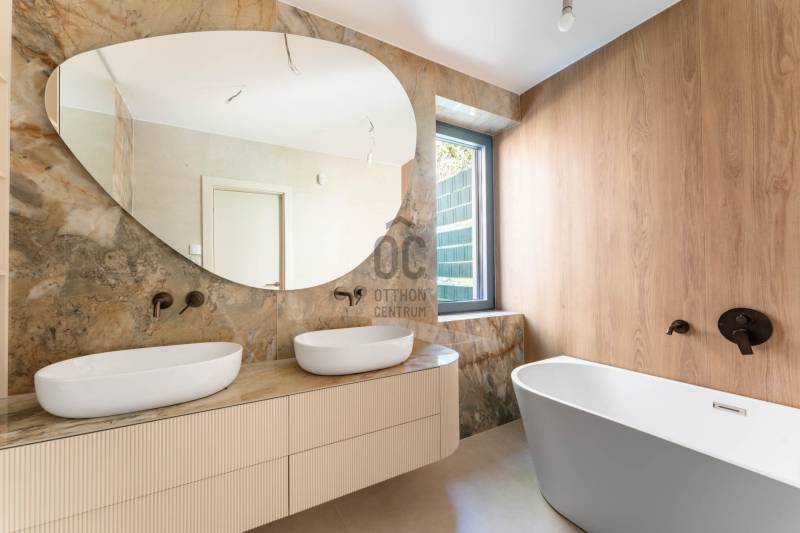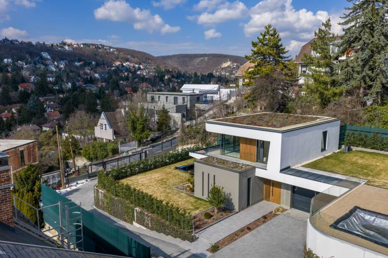 Újépítésű családi ház saját medencével, parkosított környezetben ÜDV ITTHON!Letisztult, kortárs építészet, valódi zöld környezet és magas műszaki tartalom – egy önálló családi otthon, amely a kerttel átgondolt egységet alkot.AZ ÉPÜLET ÉS KÖRNYEZET Három önálló épület egy nagy telken (önálló helyrajzi számon), igényesen parkosított környezetben: - gondosan megtervezett növényzet - gyepfelületek - automata öntözőrendszerrel ellátott kert - 6×3 méteres medence - otthoni wellness a nappali teraszárólEgy épület eladó már csak!FŐBB ADATOK- Nettó hasznos alapterület: 193 m² - Terasz: 44 m² - Különálló medence: 18 m² - Bruttó: 215 m² - Saját, kizárólagos használatú privát kert: 520 m² Funkcionális elosztás: - Nappali + 4 szoba - 2 fürdőszoba - 1 külön WC - Tároló - Fűtött garázs (3 autónak)- Mosókonyha - Gépészeti helyiség MŰSZAKI TARTALOM – HŐSZIVATTYÚ, KOMFORT, ENERGIAHATÉKONYSÁG - Önálló hőszivattyús rendszer - Szobánként külön vezérelhető mennyezethűtés- Padlófűtés a kiegyenlített hőérzetért - 30-as Porotherm X-Therm „okostégla” falszerkezet - 20 cm Dryvit hőszigetelés – korszerű, energiahatékony épületburok KULCSRAKÉSZ – PRÉMIUM RÉSZLETEKKEL Az épület elkészült, az ár tartalmazza: - Belsőépítész által tervezett, egységes belső koncepció - Asztalos által készített egyedi beltéri ajtók - Fürdőszobai beépített szekrények - Prémium TRES csaptelepek - Gépesített NOBILIA konyhabútor - Kültéren: parkosítás, öntözőrendszer, saját privát medenceKINEK AJÁNLOM? Annak, aki: - újépítésű házat, komplett életteret keres, - értékeli a magas műszaki tartalmat és az alacsonyabb üzemeltetési költségeket, - fontosnak tartja a privát kertet és a saját medencét, - hosszú távra, értékálló, prémium otthonban gondolkodik.Önnek nem mindennapos egy ilyen ingatlan megvásárlása, nekem minden napom erről szól. Ha szeretné részletesen átbeszélni a műszaki tartalmat és a személyre szabási lehetőségeket, keressen bizalommal – nézzük meg együtt, mit adhat Önnek ez az otthon.Budapest, Buda, II. kerület, 2. kerület, Remetekertváros, eladó ház, újépítésű, 5 szoba, nappali és 4 háló, 2 fürdő, vendég wc, 3 állásos garázs, nagy terasz, medence