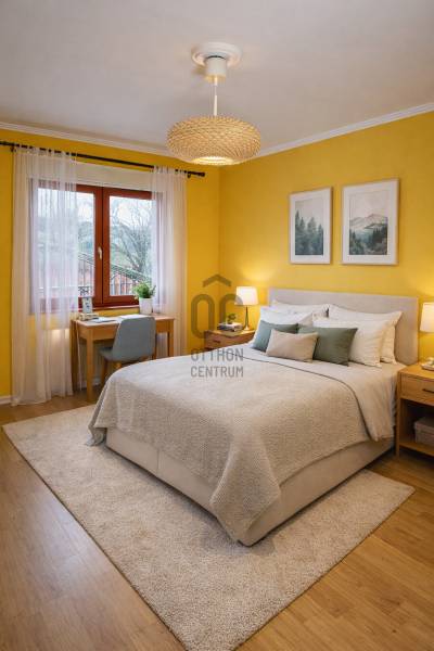 Eladó önálló, kétszintes családi ház Budapest III. kerület, Csermák Antal utcábanKözvetlenül tulajdonostól kínáljuk ezt a jó állapotú, 5 szobás családi házat egy 411 m²-es rendezett telekkel.Főbb jellemzők:• Használati alapterület: 144 m² (nettó) — tágas elosztású, világos helyiségekkel.• Szobák száma: 5 — ideális családoknak vagy akár kétgenerációs használatra is.• Építés éve: 1972 körül, 2005-ben teljeskörű felújításon és bővítésen esett át.• Komfort: duplakomfortos, jól kihasználható elrendezéssel.• Fűtés: korszerű kondenzációs gázkazán, kandallóval kiegészítve.• Nyílászárók: szigetelt fa ablakok redőnyökkel – jó hőszigetelés.• Tetőtér: beépíthető, további bővítési lehetőséget ad.• Parkolás: önálló garázs az árban (térkövezett fedett beálló + tároló).Elosztás & kialakítás:A földszinten nagy közös előtér, konyha kamrával, fürdőszoba és két szoba található.Az emeleten tágas nappali, további két szoba, konyha és fürdő biztosít kényelmes életteret.A ház külön bejárattal is rendelkezik, így akár két részre is szétválasztható (pl. generációk vagy bérbeadás céljából).Kültér:A telek rendezett, gondozott kerttel, gyümölcsfákkal és virágágyásokkal rendelkezik. A hátsó kijáratnál térkövezett grillterasz, a telek végén fedett kocsibeálló (14 m²) és tárolóépület (8 m²) található.Elhelyezkedés & infrastruktúra:Csendes, kertvárosi környezet, mégis jó közlekedéssel.HÉV és buszmegállók ~5 perc sétára, Árpád híd gyors elérhetőséggel.Óvoda, iskola, boltok, bevásárlási lehetőségek ~10 perc gyalog