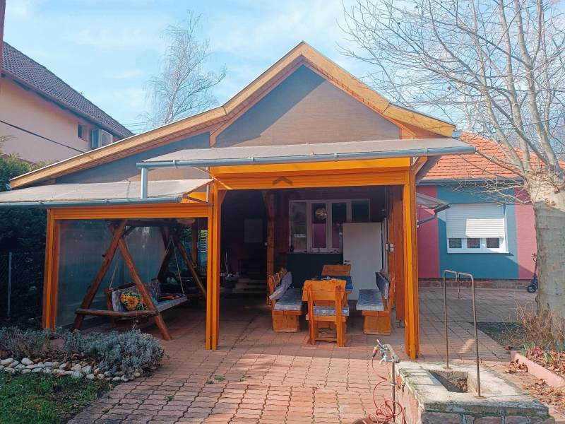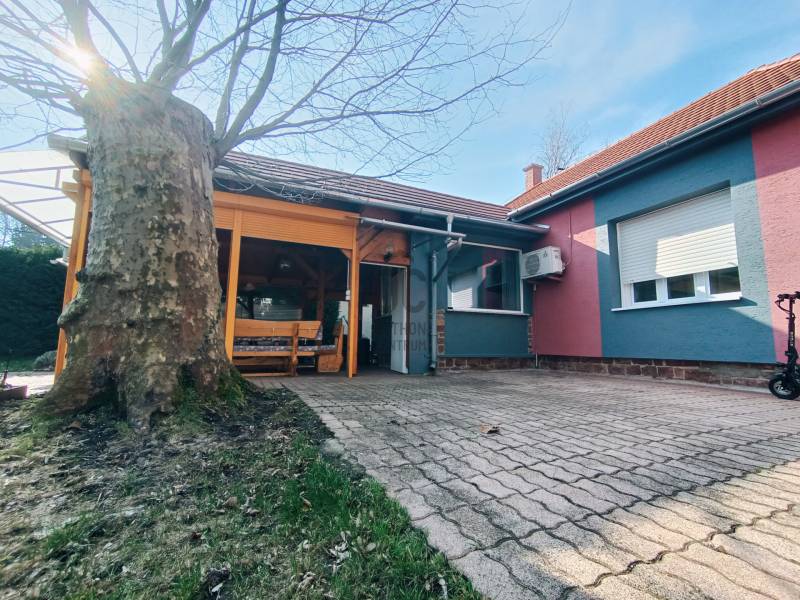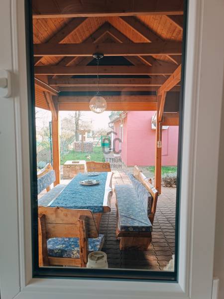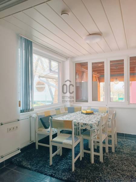 Ábrahámhegy egykori kikötőépülete egy kő falazatú kis villaépület volt a századfordulón. A régi térképek tanulsága szerint ezen épülettel szemben indult azon kijáró, amelyről a vízi szállítást akkortájt megoldották.Ezen épület ma már egészen más arcát mutatja, bár a szemfülesek megtalálják benne azon részleteket, amelyek tanúskodnak az akkori építőmesterségről, a telek pedig mit sem változott azóta, most is a Balaton partjáig fut, saját stéggel a végén.A vastag falazaton belül ma már egy teljesen felújított, modern, tágas és napfényes lakóházat találunk, amelynek a belmagassága 290 cm! A lakóépület hasznos alapterülete 56 nm, amelyben tágas nappali, napfényes étkező és két nagy hálószoba kapott helyet a konyha és a fürdőszoba mellett.A bejárat előtt kényelmes, árnyas, fedett, 22 nm-es teraszt alakítottak ki, ahol egy egész család és a vendégsereg elfér.A telken egy konyhával, fürdőszobával felszerelt vendégház is van, valamint háztartási helyiség és egy tágas, mindent elnyelő tároló a csónakoknak, kajakoknak, és minden egyéb vízi és szárazföldi felszerelésnek.A telek egy almafás gyümölcsössel folytatódik, majd a nádas felé még egy zárható vízieszköz-tároló található. A saját, kizárólagos használatú 12 nm-es engedélyes stég végül a nyílt Balaton felé enged szabad utat. A terület 1462 nm-es, Üh-01-es besorolás alá esik, így 15%-ban beépíthető!A mai kívánalmaknak megfelelően az ingatlan technikai jellemzői is garantálnak minden kényelmet:Garázsépület, kövezett bejáró, távirányítós tolókapu, központi kódos zárrendszer, öntözőberendezés a teljes kertben, teraszlezáró rolórendszer, központi gázfűtés, hűtő-fűtő klímák minden helyiségben, spotlámpás világítórendszer, felszerelt konyha, mosó- és szárítógép, hőszigetelt falak, 3 rétegű thermo nyílászárók, mindez szinte új állapotban!Az ingatlan egyedülálló a maga nemében! Horgászoknak, horgásztatóknak, horgászegyesületeknek és Balatonimádóknak kihagyhatatlan lehetőség!