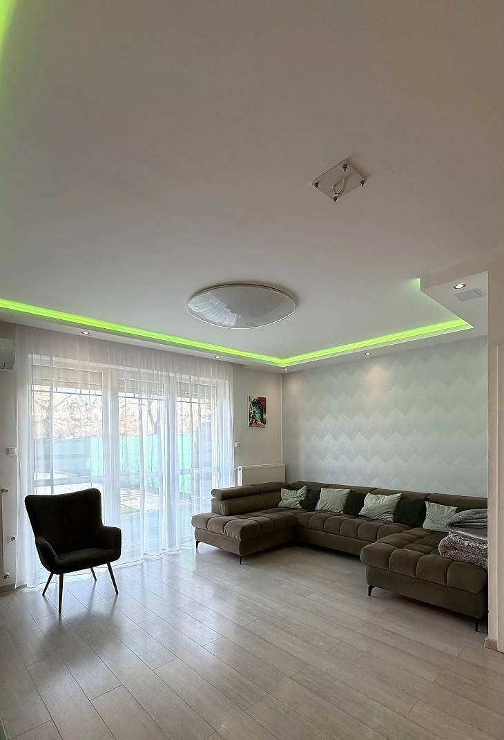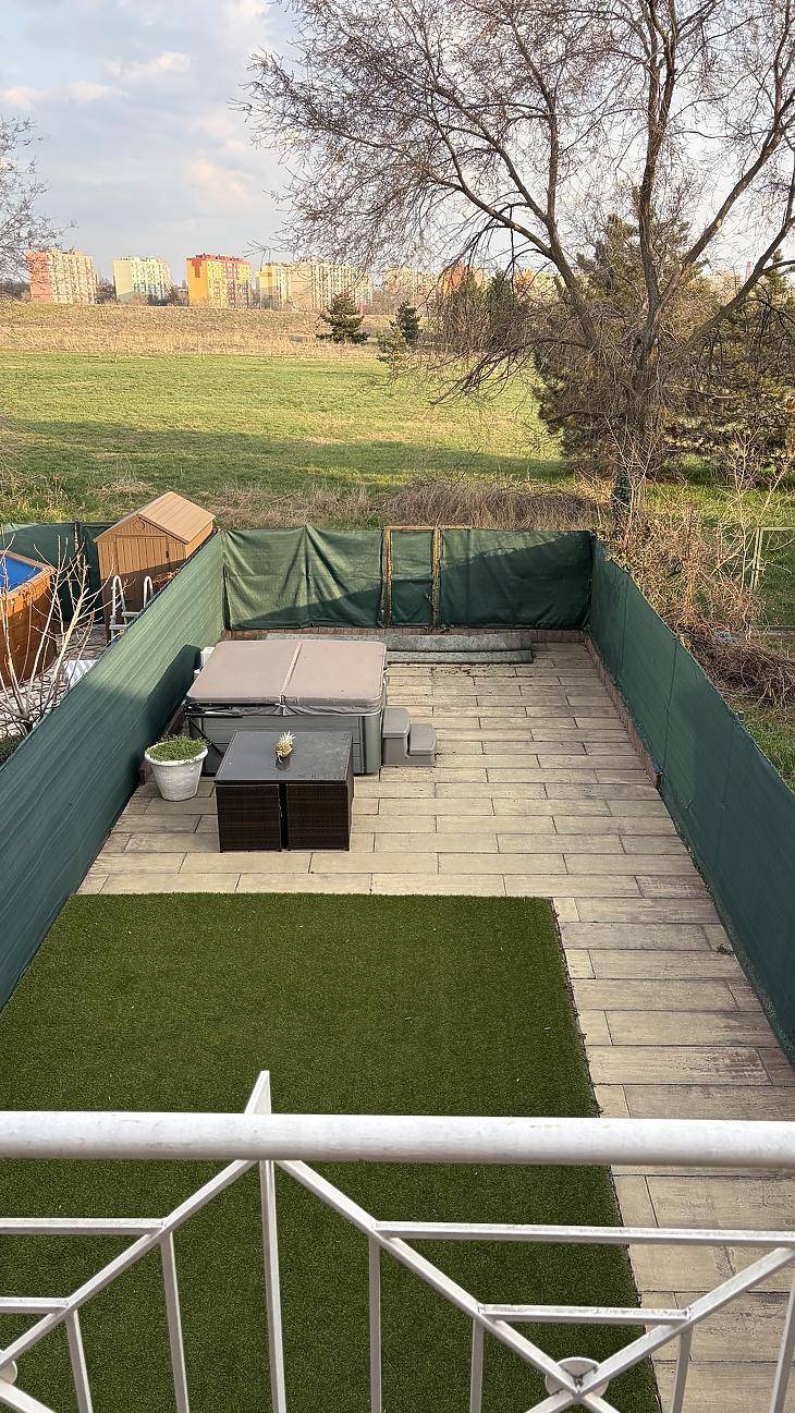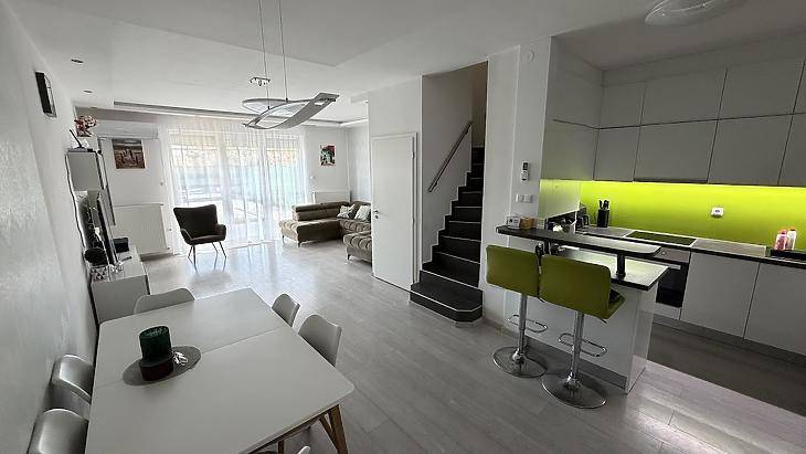 Egy kivételes adottságokkal rendelkező, újszerű állapotú sorházi lakás eladó a 10. kerületben, Óhegy egyik legkedveltebb, csendes utcájában. A 2009-ben épült ingatlan az évek során többször átalakításra és modernizálásra került, így ma egy minden igényt kielégítő, korszerű otthont kínál.A 111 nm-es lakás (ebből 100 nm fűtött lakótér) egy 190 nm-es telken helyezkedik el, praktikus elrendezéssel. A nappali mellett három külön nyíló hálószoba biztosít kényelmes életteret, így ideális választás családok számára. A világos nappaliból közvetlen kijárat nyílik a hangulatos, műfüves hátsó kertbe, amely holland pázsittal burkolt, gondozásmentes zöld környezetet kínál. Az előkert és a hátsó kert is rendezett, privát teret biztosít a pihenéshez.Az ingatlan egyik különlegessége a jakuzzi, amely tökéletes kikapcsolódást nyújt, miközben az örökpanorámás kilátás és a nyugodt környezet garantálja a mindennapi feltöltődést. A modern műszaki tartalom része a 3x32A elektromos hálózat, az elektromos autó töltőpont, valamint a 4 db split klíma, amelyek egész évben biztosítják a komfortot.A lakás teljesen különálló, albetétesített, saját mérőórákkal (külön mellékvízóra, gázóra, távmérős villanyóra) rendelkezik. A kombicirkó rendszeresen karbantartott, így megbízható és gazdaságos fűtést biztosít. A nyílászárókat alumínium biztonsági redőnyök védik, a teraszajtó elektromos redőnnyel felszerelt. A tető részleges felújításon esett át.Parkolás szempontjából is kiváló a lakás: fedett autóbeálló, udvari beálló, valamint összesen 2 saját parkolóhely áll rendelkezésre.Az ár részét képezi a teljes bútorzat a nappali kivételével, valamint a gépesített, modern konyha is, így az ingatlan szinte azonnal költözhető.Ez a sorházi lakás tökéletes választás azok számára, akik nyugodt, zöld környezetben, mégis kiváló infrastruktúrával rendelkező helyen keresnek egy igényes, modern és jól felszerelt otthont.