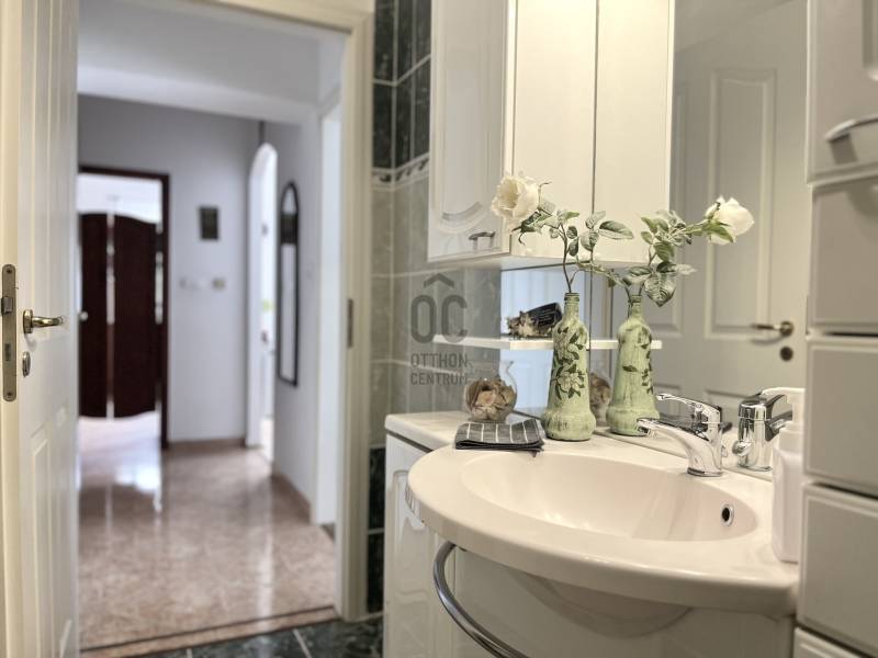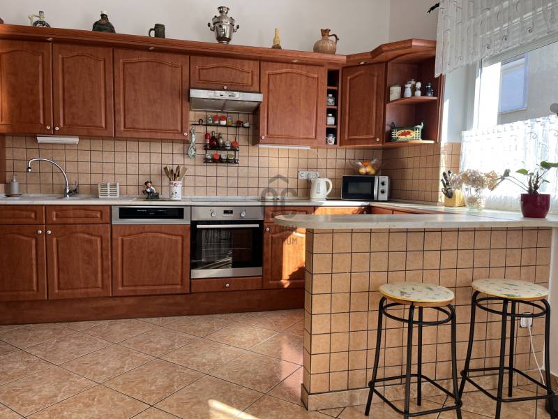 Összeköltözők, nagycsaládosok figyelem!Budapest XVIII. kerületének egyik legjobb részén, a csendes, családi házakkal övezett Bókaytelepen, a Szélmalom utcában kínálunk megvételre egy kiváló adottságokkal rendelkező, folyamatosan karbantartott, szigetelt, kétlakásos, háromszintes, téglaépítésű családi házat. Az utcafronttól előkert választja el.Az ingatlan 1/1 tulajdonjogú, jogilag teljesen önálló. Ikerház, de telekmegosztással saját helyrajzi számot kapott.Két külön lakás került kialakításra, külön mérőórákkal.Nagy előny a ZÁRT LÉPCSŐHÁZ (10,8 m²) , így a tetőtéri lakás és a szuterén is az udvar érintése nélkül, belső lépcsőházon keresztül közelíthető meg.Az ingatlan részei: • földszinti lakás• emeleti ( tetőtéri) lakás• szuterén - szerelőaknával ellátott garázzsal• zárt lépcsőházA KERT 539 m²-es, gyönyörűen gondozott, igazi családi élettér.Kiváló sütögetésre, családi rendezvényekre, pihenésre.• épített, fedett szaletli• kemence, sparhelt és kinti mosogató• fúrt kút• kiépített öntözőrendszer• térkövezett kocsibeálló akár 3 gépjármű számáraFÖLDSZINTI LAKÁS – 90,2 m² + 12 m² teraszKiváló állapotú, kellemes hangulatú, rendkívül napfényes lakás.Belmagasság: 3,12 mHelyiségek:• kényelmes méretű előszoba• nagyméretű amerikai konyhás nappali• 3 külön nyíló szoba• tágas fürdőszoba sarokkáddal és épített zuhannyal• külön mellékhelyiség• közlekedőA nappali és hálószoba klímával szerelt.A konyha különleges megoldással két irányból megközelíthető (közlekedő irányából lengőajtón keresztül illetve a nappali-étkező irányából is)Minőségi műanyag nyílászárók vannak redőnnyel és szúnyoghálóval ellátva.Fűtése: gázkazán és fatüzelésű kazánMeleg víz villanybojler által.A fürdőben törölközőszárítós radiátor és padlófűtés biztosítja a meleget.A lakáshoz 12 m²-es terasz tartozik.TETŐTÉRI LAKÁS – nettó 76,4 m² (bruttó 95,3 m²) + 12 m² fedett terasz2005-ben utólagos tetőtér-beépítés által épült.A lakás jó adottságú, kevés ráfordítással igazán különleges otthonná alakítható.Helyiségek:• nagyméretű előszoba (beépített szekrény számára alkalmas térrel)• amerikai konyhás nappali• 3 külön nyíló szoba ( ferde tető kialakítással)• külön WC• fürdőszoba• közlekedőAz amerikai konyhás nappali különleges, impozáns tér látszó gerendákkal, a tetőgerincnél 4,5 m-es belmagassággal.A többi helyiségben a belmagasság 2,65 m.A ferde tető alatti, 1,90 méternél alacsonyabb terek is jól kihasználhatókA nappali klímával szerelt.Fűtése: gázcirkóSZUTERÉN - alagsor ablakokkal és fűtéssel ellátva, 100 m²-en.Részei:• kazánház• konditerem• konyha• spájz• mellékhelyiség• SZERELŐAKNÁVAL ELLÁTOTT GARÁZS (36,95 m²), a szuterén szintenIdeális választás:• két generáció összeköltözésére• nagycsaládosoknak• vállalkozás + lakhatás kombinációjára• befektetésre, bérbeadásraNyugodt, családbarát környék, kiváló infrastruktúra, zöldövezet, mégis jó közlekedés, boltok, piac. Iskola, óvoda a közelben.A közelben található a Bókay-kert, amely sportolási, kikapcsolódási és családi programlehetőségek széles választékát kínálja.Ha egy valóban jól kihasználható, értékálló, kétgenerációs otthont keres a XVIII. kerület egyik legjobb részén, ezt az ingatlant érdemes megnéznie!