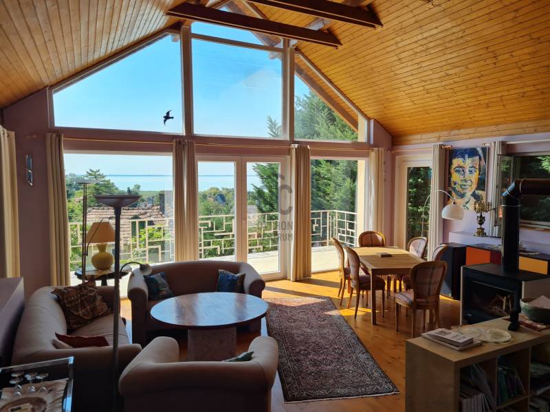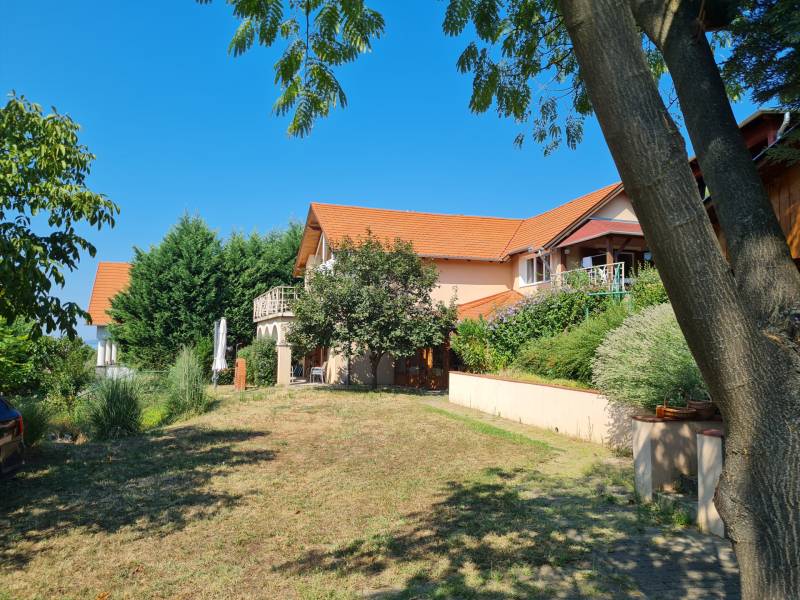 Badacsonyban vált eladóvá ez a különleges atmoszférával rendelkező épület, mely egyedi kialakításával egyből kitűnik az őt körülölelő ingatlanok közül. A területről és a ház egészéből meseszép a panoráma a Balaton vizére, de ha ez nem lenne elég, a Badacsony is ott magasodik az épület mögött.A belterületi, 1519 négyzetméteres telken a jelenlegi tulajdonos tervei és álmai alapján készült el 2005-ben a hétvégi házként bejegyzett ingatlan – mely családi otthonnak is kitűnő választás lehet -. Az épület alapjául egy már meglévő bazaltkő pince szolgált, ez került átépítésre és bővítésre korszerű anyagok felhasználásával.A ház két szinten összesen 166 négyzetméternyi hasznos alapterülettel rendelkezik.A földszinten kialakított helyiségeket az előtérből közelíthetjük meg. Itt található egy 27 négyzetméteres, parasztfödémes, meghitt hálószoba, mely közvetlen kertkapcsolattal rendelkezik és akár két különálló hálóvá osztható. Mellette kapott helyet a lépcsőház, egy fürdőszoba, tároló, pince és egy műterem.Az emeleten lévő helyiségek közül a teljes üvegfelülettel ellátott nappali/műterem és a hozzá tartozó terasz olyan egyedi és megismételhetetlen hangulatot áraszt, hogy itt egyből az az érzése az embernek, hazaért...Ezt a nappali részt egészíti ki még egy közlekedő, hálószoba, fürdőszoba, konyha és étkező, valamint egy loggia is.Az épület mindkét szintjén beépítésre került egy-egy fatüzelésű kályha, így hűvösebb időszakban ezek szolgáltatják a meleget.A kert teljesen körbekerített, több autó egyidejű parkolása is megoldható telken belül.Az udvar teraszos kialakítású, akár egy medence, gyermek játszó vagy nyári konyha kiépítésére is bőven van még hely.Az épület melletti részen egy fedett, hangulatos kerti kiülő is helyet kapott, a kert alsó részén pedig egy téglából épült tárolót is építettek.A ház egész évben aszfaltos úton könnyen megközelíthető, a Balaton partjától gyalogosan 15 percre, a központtól 2 perces autóútra van.Ajánlom az ingatlant mindazok figyelmébe, akik a “béke szigetét” keresik távol a világ zajától. Az épület állandó lakhatásra és nyaralónak is egyaránt tökéletes választás lehet!Amennyiben kérdése merülne fel az épülettel kapcsolatban, vagy szeretné azt megtekinteni, kérem keressen megadott elérhetőségeim egyikén!