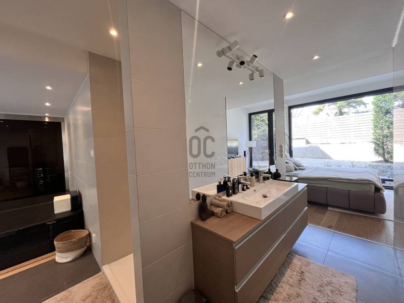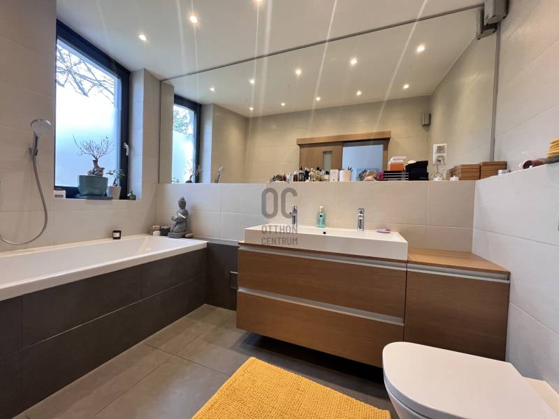 Exkluzív, okosotthon Budaligeten – minimalista elegancia, wellness és családi kényelem egy helyenHa nem egyszerűen házat, hanem valódi, magas minőségű otthont keresel a családod számára, akkor ez a budaligeti ingatlan kiemelkedő lehetőség.Budapest II/A kerületének egyik legcsendesebb, zöldövezeti részén található ez a 211 m²-es, egyedi tervezésű családi ház, ahol a letisztult modern design, a prémium kivitelezés és a kényelmes családi élet tökéletes egyensúlyban találkozik.Az ingatlan 5 szobával és 2 fürdőszobával rendelkezik, így ideális választás nagyobb családok számára is. A tágas, jól átgondolt belső terek minden családtagnak biztosítják a saját életteret, miközben a közös terek a mindennapi együttlétek valódi központjai lehetnek.A ház egyik legnagyobb erőssége a modern amerikai konyhás nappali, ahol a konyhaszigetes kialakítás nemcsak látványos, hanem kifejezetten praktikus is – tökéletes családi reggelikhez, baráti vacsorákhoz és közös pillanatokhoz.Az otthon kényelmét és korszerűségét emeli a smart home rendszer, amely a mai elvárásoknak megfelelő, tudatos és kényelmes életformát támogatja. A motoros redőnyök, a biztonsági ajtó és a riasztórendszer tovább erősítik azt az érzést, hogy itt valóban minden a nyugalomról és biztonságról szól.Ez a ház nemcsak funkcionális, hanem életminőséget is ad. A saját szauna és jakuzzi különleges extra, amely a hétköznapok végén valódi feltöltődést kínál – mintha minden nap egy privát wellnessélménnyel zárulna.A lokáció családos szemmel is kifejezetten erős: a környék csendes, biztonságos és zöld, miközben autóval és tömegközlekedéssel is jól megközelíthető. A közelben iskolák, óvodák, bevásárlási lehetőségek és minden fontos infrastruktúra elérhető, ami a kényelmes mindennapokhoz szükséges.Ez az ingatlan azoknak szól, akik nem akarnak kompromisszumot kötni elhelyezkedés, minőség és otthonérzet között.Ha egy exkluzív, modern, mégis valóban élhető családi otthont keresel Budaligeten, ezt a házat érdemes személyesen is megnézned.Keress bizalommal, és egyeztessünk időpontot a megtekintésre.