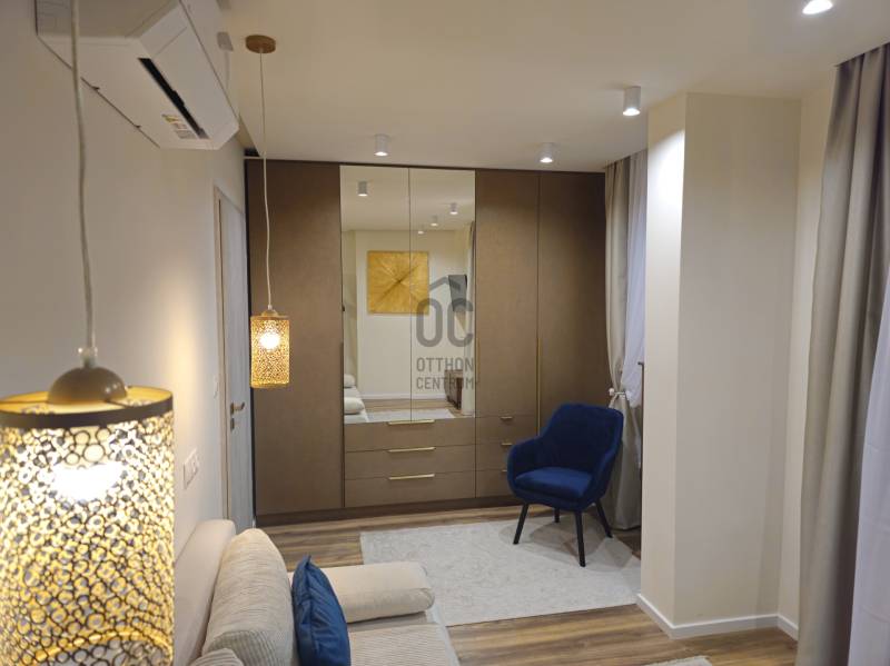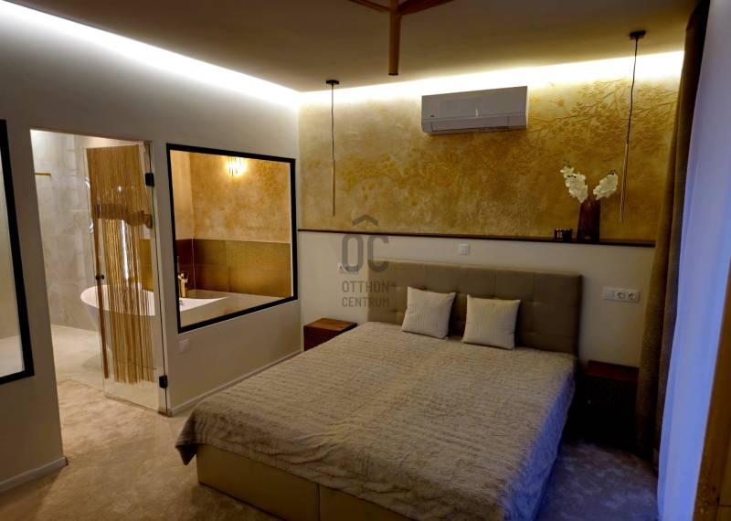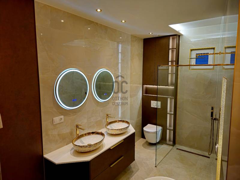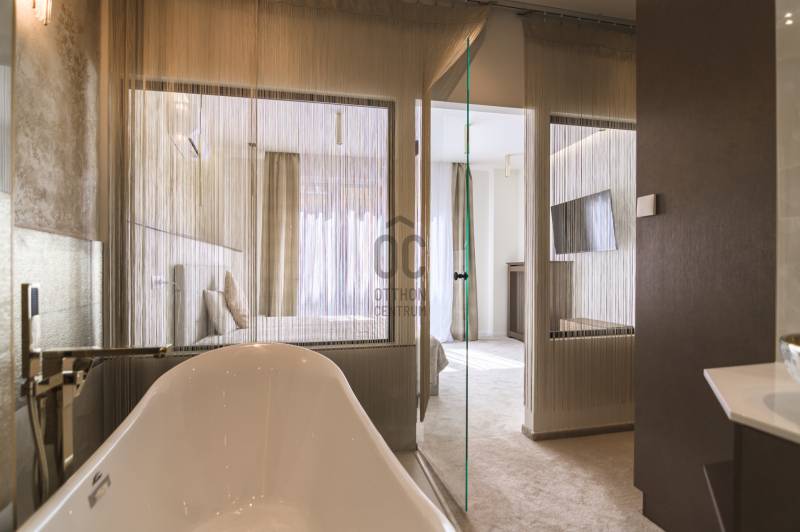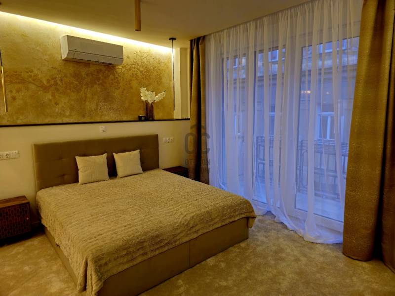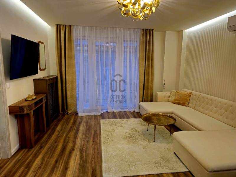 Budapest V. kerületének egyik legpatinásabb utcájában, a Molnár utcában, mindössze néhány lépésre a Duna-parttól és a híres Váci utcától kínálunk megvételre egy nettó 91 m2-es, prémium minőségben felújított, teljes bútorzattal együtt kiadó luxuslakást.Az ingatlan egy liftes társasház 4. emeletén helyezkedik el, DNY tájolásának köszönhetően világos, napfényes terekkel, kiváló elosztással és ritkaságnak számító erkélykapcsolattal minden helyiségből, összesen kb. 14 m2 alapterülettel.A lakás főbb jellemzői:-Amerikai konyhás nappali - tágas, világos terek,-2 külön nyíló hálószoba, mindkettő saját fürdőszobával és WC-vel,-Külön vendég WC,-Minden helyiség klimatizált,-Erkélykapcsolat minden szobából és a nappaliból, összesen kb. 14 m2,-Teljes bútorzat a vételár részét képezi,-Igényes, prémium kivitelezés.Master bedroom-Saját fürdőszoba,-Zuhanyzó és fürdőkád,-Dupla mosdókagyló,-Külön gardróbhelyiség.Junior suite-Saját fürdőszoba,-Zuhanyzó,-WC,-Beépített szekrények.Környék és elhelyezkedés:A Molnár utca a belváros egyik legexkluzívabb és legkeresettebb része, kevesebb mint 200 méterre a Duna-parttól. A környék ideális választás azok számára, akik egyszerre keresik a nyugodt lakókörnyezetet és a belvárosi élet előnyeit.-Duna-part és rakparti sétányok néhány perc sétára-Váci utca üzletei és éttermei a közelben-Fővám téri Vásárcsarnok könnyen elérhető-Bálna Budapest és Szabadság híd pár perc alatt megközelíthetőKözlekedés:-M3 és M4 metró,-2-es villamos,-Számos busz és troli.Ideális választás:-Saját részre, prémium belvárosi életet keresőknek.-Befektetőknek, azonnal kiadható ingatlant keresőknek.-Külföldi vásárlóknak presztízs lokáció miatt,Összegzés:Egy ritka adottságokkal rendelkező, erkélyes, prémium minőségben felújított belvárosi lakás, amely azonnal költözhető és hosszú távon is értékálló.Kapcsolat:Megtekintéssel és további információval kapcsolatban keressen bizalommal.