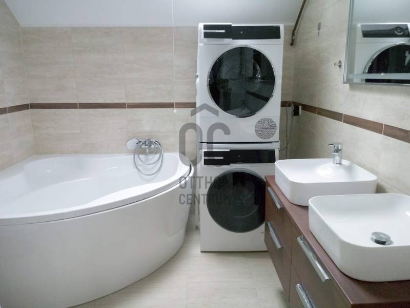 Kisállat hozható!Gyönyörű környezetben, Budafok-Rózsavölgy határán 2019-ben épült jó elosztású 127 m2-es ikerházfél a hozzátartozó 430 m2-es telekrésszel kiadó. Földszinten 48 m2-es nappali-konyha-étkező gépesített konyhabútorral, valamint dolgozószoba, kamra, zuhanyzós fürdőszoba, emeleten 3 külön nyíló szoba, káddal, zuhanyfülkével ellátott fürdőszoba található. Két hálószobákban beépített szekrény van, ezen kívül más bútor nincs az ingatlanban, Az emeleti fürdőszobában mosógép és szárító van. A kiadó lakás az alaprajzon 2.lakásként van jelölve. A bérleti díjat a bérbeadó Euro-ban határozta meg, a bérleti díjon felül a rezsi költség a bérbevevőt terheli, a közmű számlák a bérlő nevére lesz átírva. Szerződéskötéskor 1 havi bérleti díj előre történő kifizetése és 2 havi bérleti díjnak megfelelő kaució szükséges. Minimum 2 évre szóló, hosszútávú kiadás,Buszmegálló 500 méterre, közvetlen járat a Metróhoz, menetidő kb 8-10 perc.Német leírásDer übersetzte Text ins Deutsche lautet: Kleintier erlaubt!In einer wunderschönen Umgebung, an der Grenze von Budafok-Rózsavölgy, wird ein gut geschnittenes Doppelhaus mit einer Fläche von 127 m² und einem dazugehörigen Grundstück von 430 m² zur Miete angeboten. Im Erdgeschoss befindet sich ein 48 m² großes Wohn-Esszimmer mit einer ausgestatteten Einbauküche, sowie ein Arbeitszimmer, eine Speisekammer und ein Badezimmer mit Dusche. Im Obergeschoss gibt es drei separat zugängliche Schlafzimmer sowie ein Badezimmer mit Badewanne und Duschkabine. In zwei der Schlafzimmer sind Einbauschränke vorhanden, darüber hinaus sind keine weiteren Möbel im Objekt vorhanden. Im Badezimmer im Obergeschoss sind eine Waschmaschine und ein Trockner vorhanden. Die zur Vermietung stehende Wohnung ist im Grundriss als Wohnung 2 gekennzeichnet. Die Miete wurde vom Vermieter in Euro festgelegt, zusätzlich zur Miete trägt der Mieter die Nebenkosten, die Versorgungsrechnungen werden auf den Namen des Mieters umgeschrieben. Bei Vertragsabschluss sind die Vorauszahlung einer Monatsmiete sowie eine Kaution in Höhe von zwei Monatsmieten erforderlich. Es handelt sich um eine langfristige Vermietung mit einer Mindestlaufzeit von 2 Jahren. Eine Bushaltestelle befindet sich 500 Meter entfernt, mit direkter Verbindung zur U-Bahn, die Fahrzeit beträgt etwa 8-10 Minuten. Kleintier erlaubt!