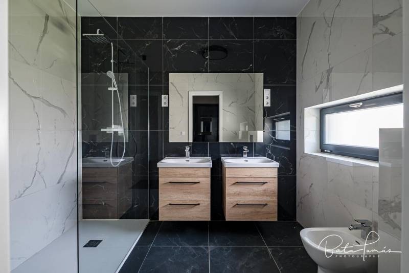 ELADÓ PRÉMIUM CSALÁDI HÁZ ÖRÖK PANORÁMÁVAL – KULCSRA KÉSZ ÁLLAPOTBAN!Eladásra kínálunk egy exkluzív, modern megjelenésű, 185 nm-es családi házat, melyhez további 81 nm terasz tartozik, örök panorámás telken. Az ingatlan azonnal költözhető, csak a bútorok kiválasztása van hátra!Főbb adatok:Lakótér: 185 nmTerasz: 81 nmTelek: örök panorámásIrányár: 424,9 millió Ft (kb. 1,88 M Ft/nm – teraszok 50%-os beszámításával)MŰSZAKI TARTALOM ÉS EXTRÁK- Ez az otthon a legmodernebb műszaki megoldásokat ötvözi prémium minőséggel:- Hőszivattyús rendszer (hűtés-fűtés)mennyezeti és padlófűtés (fürdőkben padlófűtés)- Fűtött garázs (padlófűtéssel)- Napelem előkészítés- Részben okosotthon rendszer- Fa nyílászárók- Prémium szaniterek: Villeroy / Duravit- Minőségi csaptelepek: Hansgrohe / Grohe- Automata redőnyrendszer (okos motorokkal)- Beépített világítás (spotok, design elemek)- Gépesített, modern konyhaKÜLSŐ ÉS KERT- Teljesen füvesített kert- Automata öntözőrendszer- Robotfűnyíró kiépítés- Medence kialakításának lehetősége (előkészítve)- Kialakított belső parkolók- Kandalló előkészítésEXTRA KÉNYELEM- A ház gépészetileg előkészített lágyított víz használatára, amely jelentősen növeli a háztartási gépek és csaptelepek élettartamát- A konyhában külön visszaállítható nem lágyított víz iváshoz és főzéshezMIÉRT KÜLÖNLEGES?Ez az ingatlan ideális választás azok számára, akik:modern, letisztult dizájnt keresnekkompromisszummentes műszaki tartalmat szeretnénekazonnal költözhető, új építésű otthont keresnekpanorámás, nyugodt környezetre vágynakHa egy valóban prémium otthont keres, amely minden részletében átgondolt és jövőálló megoldásokat kínál, ezt érdemes személyesen is megtekinteni!