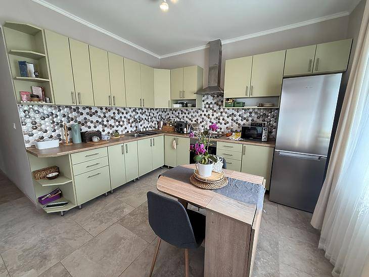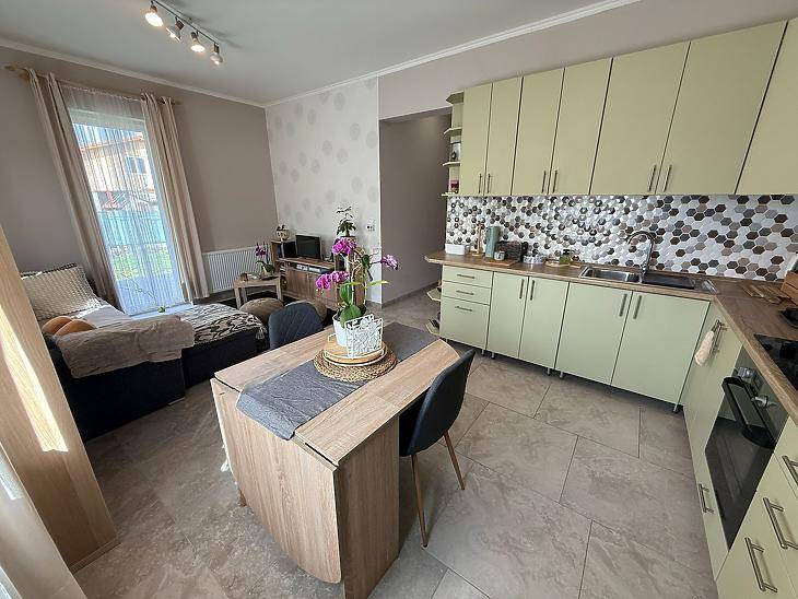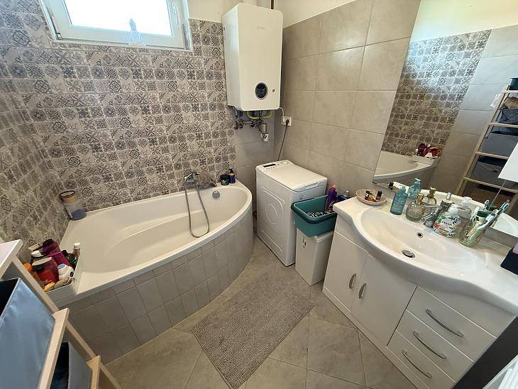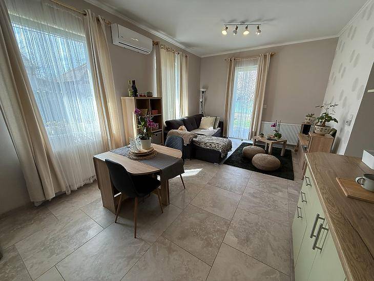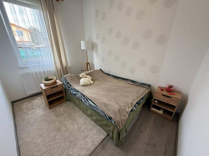 XVII. KERÜLETBEN: RÁKOSCSABÁN, CSENDES UTCÁBAN ELADÓ EGY 65 NÉGYZETMÉTERES, ÚJSZERŰ ÁLLAPOTÚ IKERHÁZFÉL, 380 NÉGYZETMÉTERES TELEKKEL ÉS KOCSIBEÁLLÓVAL.A ház 2021-ben épült Porotherm téglából, beton alappal és fa födémmel. A ház 10 cm dryvit szigeteléssel rendelkezik, a tető pedig 10 cm kőzetgyapottal szigetelt. A nyílászárók műanyagok.A fűtést és a meleg vizet kombi cirkó biztosítja, a nappaliban hűtő-fűtő klíma található.A szobák parkettásak, a többi helyiség járólappal burkolt.KIALAKÍTÁS: Amerikai konyhás nappali + étkező 8 négyzetméteres teraszkapcsolattal, 3 szoba, kádas fürdőszoba, wc, közlekedő, előszoba.A KÖRNYÉK: Rákoscsaba csendes mellékutcájában, jó közlekedésnél. A közelben, iskola, óvoda, játszótér, orvosi rendelő, gyógyszertár, számos bevásárlási lehetőség.Az M0-ás autópálya pár perc alatt közelíthető meg. A közelben, pár perc sétával a 169 E és a 269, járatok megállója és a 956 éjszakai busz megállója található. IRÁNYÁR: 119 M Ft.VEVŐINK RÉSZÉRE A KÖZVETÍTÉS DÍJTALAN!A hirdetésben szereplő adatok tájékoztató jellegűek.