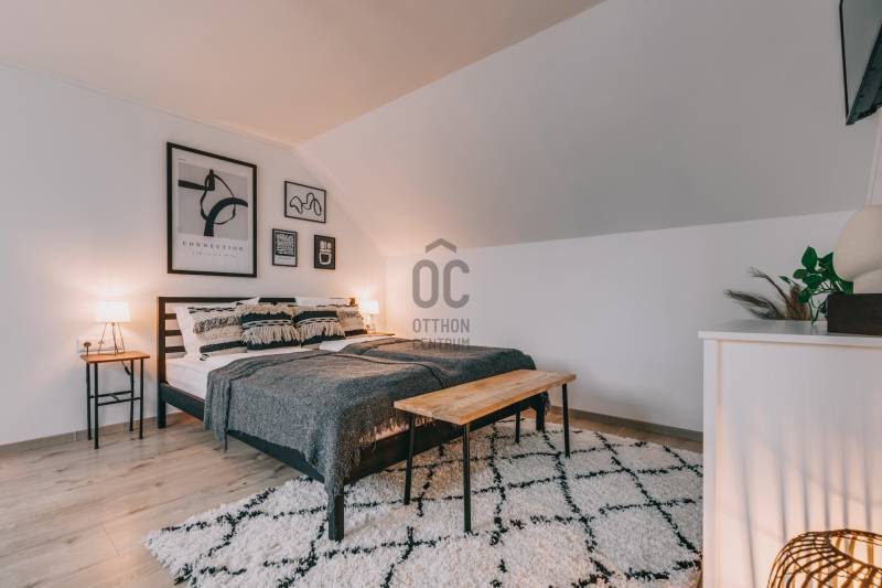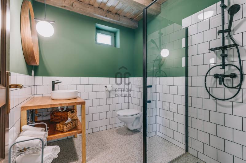 A Balaton-felvidéki stílusjegyek és a modern, letisztult, átgondolt belső kialakítás teszi egyedülállóvá ezt a 2022-ben épült, prémium műszaki tartalommal rendelkező apartmanházat.Az épület Szigliget üdülőövezeti részén található, pár perces autóútra a helyi strandtól, hajókikötőtől, éttermektől és a méltán híres Szigligeti Vártól.Az ingatlan belső felosztása kifejezetten a jelenleg betöltött funkció figyelembevételével került kialakításra.5 apartman található az épületben.4 apartman egységes elrendezéssel, de egyedi designnal rendelkezik. Ezen apartmanok mindegyikében egy étkező- teakonyha rész, hálószoba és fürdőszoba került kialakításra. Két földszinti apartmanhoz közvetlen, fedett teraszrész is tartozik, a másik két apartman pedig az emeleti részen található.Az 5. rész egy nagyobb családi apartman privát terasszal és jakuzzival. Itt egy nappali - teakonyha - étkező, fürdőszoba és 2 hálószoba kapott helyet.A szállásegységek mindegyike klimatizált, TV és internethozzáféréssel. Az apartmanonként vezérelhető riasztórendszer és a kamerarendszer magas szintű biztonságot nyújt a vendégek részére.Az épületben látható teljes berendezés az eladási ár részét képezi, így az üzemeltetése tulajdonosváltozás esetén is megszakítás nélkül tovább folytatódhat, viszont belső térátalakítással családi otthonnak és nyaralónak is remek választás lehet!A vendégek további kényelmét szolgálva a területen kialakításra került egy fedett, 41 négyzetméteres kültéri wellness részleg, itt 2 jakuzzi, finnszauna és infraszauna található a hozzá tartozó sószobával, valamint zuhanyzó és mosdó.Műszaki paraméterek - korszerű, energiatudatos rendszer:- tégla szerkezet, 10 cm-es homlokzati hőszigeteléssel- hőszigetelt üvegezésű, fa nyílászárók- 6.3 KW teljesítményű napelemrendszer- hőszivattyús hűtés - fűtés fan-coil rendszerrelAz energiahatékony gépészet és a megújuló energiahasználat alacsony fenntartási költséget és hosszabb távon is stabil működést eredményez.A 2434 négyzetméteres, összközműves terület ízlésesen parkosított, körbekerített és több autó egyidejű parkolására is elegendő, térkővel burkolt résszel rendelkezik.A hátsó kertben lehetőség van egy medence, nyári konyha, gyermek játszótér kiépítésére is.Szigliget a Balaton északi partjának egyik legkeresettebb települése, legyen szó állandó lakhatásról, nyaralóról, vagy exkluzív szálláshely kereséséről.A prémium kivitelezés, a wellness szolgáltatások és a nagyméretű, parkosított telek kiemelkedő piaci pozíciót biztosít a rövid és hosszú távú hasznosítás során egyaránt.Amennyiben egy azonnal működtethető, minőségi kivitelezésű, Balaton-felvidéki karakterrel rendelkező apartmanházat keres, ez az ingatlan ideális választás.További információért és megtekintés egyeztetéséért várom megtisztelő megkeresését elérhetőségeim egyikén.Az adatok kizárólag a megbízóink által rendelkezésünkre bocsátott információkon alapulnak.Fentiekre tekintettel, az adatok teljességéért, helyességéért és aktualitásáért nem vállalunk felelősséget.Az árváltozás, adatmódosítás és közbeni értékesítés jogát fenntartjuk, mindezekért jogi felelősséget nem áll módunkban vállalni.