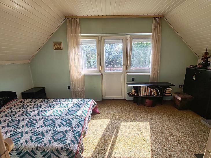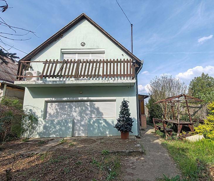 XVII. KERÜLETBEN, RÁKOSHEGYEN, ELADÓ EGY LEKERÍTETT 1230 NÉGYZETMÉTERES KÜLTERÜLETI TELEKRÉSZEN LÉVŐ 68 NÉGYZETMÉTERES CSALÁDI HÁZ 30 NÉGYZETMÉTERES TÁROLÓVAL ÉS PINCÉVEL. A ház B30-as téglából épült, beton alappal és vasbeton födémmel, 10 cm szigeteléssel. A villanyvezetékek rézből vannak.A fűtést hűtő-fűtő klíma, cserépkályha és elektromos fűtőtestek biztosítják. A nyílászárók 2009-ben lettek cserélve, dupla üvegesek.A telken víz és villany be van vezetve (3×16 A + 1×16 A éjszakai áram). Csatorna nincs bekötve. Van egy fúrt kút is.Burkolatok:A földszinten járólap, míg az emeleten padlószőnyeg található.Elrendezés:Földszint: nappali, konyha + étkező, zuhanyzós fürdőszoba + wc, terasz, szélfogó.Emelet: 2 szoba, közlekedő, erkély.Környék:Nyugodt, csendes, kertvárosias rész, kevés forgalommal.A legközelebbi buszmegálló gyalogosan nagyjából 10 perc alatt megközelíthető.Tömegközlekedés szempontjából a közelben több buszjárat is elérhető, amelyekkel kb. 10–15 perc alatt elérhető Rákoskeresztúr központja, ahol további átszállási lehetőségek vannak.A közelben kisebb, alap ellátást biztosító boltok is elérhetők, általában 15 perc sétára.Finanszírozás:A telek osztatlan közös tulajdon, külterületen helyezkedik el, ezért az ingatlan nem hitelezhető.ÁR: 49,9 M Ft.VEVŐINK RÉSZÉRE A KÖZVETÍTÉS DÍJTALAN!A hirdetésben szereplő adatok tájékoztató jellegűek.