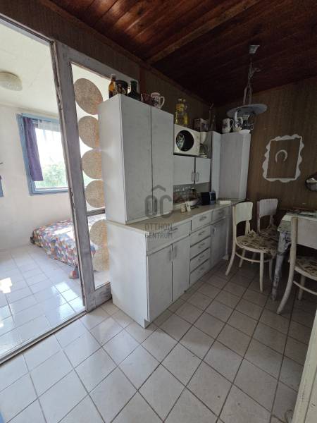 Kiváló lehetőség mindazok számára, akik saját igényeik szerint alakítanák ki álmaik pihenőhelyét egy csendes, zöldövezeti környezetben. Az ingatlan egy vadregényes, intim hangulatú telken helyezkedik el, ahol a természet közelsége és a nyugalom garantált.Az 591 négyzetméteres, körbekerített telken egy vegyes szerkezetű épület található, melynek nagyobb része stabil fa felépítmény, ezt egészíti ki egy tégla építésű rész.Az ingatlan felújítandó állapotú, ami remek lehetőséget biztosít arra, hogy új tulajdonosa saját elképzelései szerint alakítsa.A házhoz tartozó tágas, 20 négyzetméteres teraszról és a telek bizonyos pontjairól részpanoráma nyílik a Balatonra, ami különleges atmoszférát kölcsönöz az ingatlannak. A környék jól megközelíthető, mégis nyugodt, ideális hétvégi kikapcsolódásra vagy akár hosszabb tartózkodásra is.A házban a következő helyiségek találhatók: Közlekedő, gardrób, konyha-étkező, 2 szoba és fürdőszoba. A terasz alatt pedig egy nyitott tároló is helyet kapott.Az épület közművesített, víz, villany és csatorna is bekötésre került.Télen-nyáron könnyedén elérhető és a helyi strand, valamint a központi rész is 15 perces könnyed sétatávra található.Ha egy igazán különleges hangulatú nyaralót keres, amelyet saját ízlésére formálhat, ezt az ingatlant mindenképp érdemes megtekinteni!Az adatok kizárólag a megbízóink által rendelkezésünkre bocsátott információkon alapulnak.Fentiekre tekintettel, az adatok teljességéért, helyességéért és aktualitásáért nem vállalunk felelősséget.Az árváltozás, adatmódosítás és közbeni értékesítés jogát fenntartjuk, mindezekért jogi felelősséget nem áll módunkban vállalni.